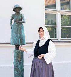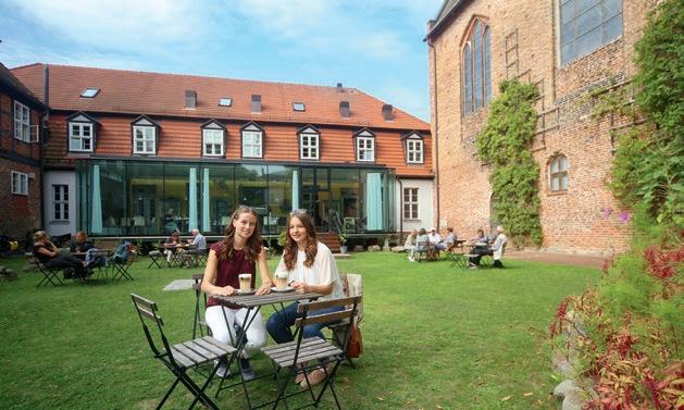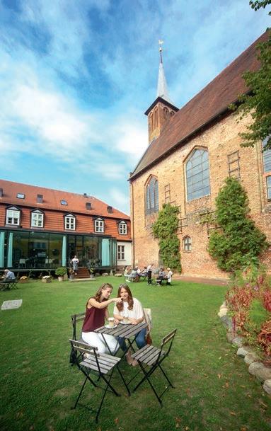 Vorsteherinnen führten das Ribnitzer Kloster seit seiner Gründung im Jahr 1599. Die letzte Domina des Stifts, Olga von Oertzen, starb am 10. Juli 1961. Heute erinnert eine Bronzeskulptur an die burschikose, plattdeutschsprechende Dame mit ihren Hunden Biene und Optimus. Weitere Geschichten aus dem Klostergarten finden Sie auf Seite 36.
