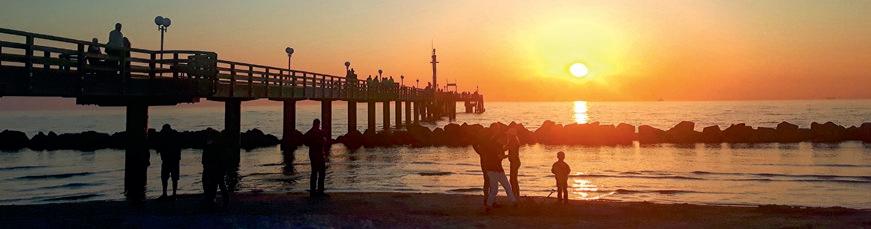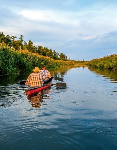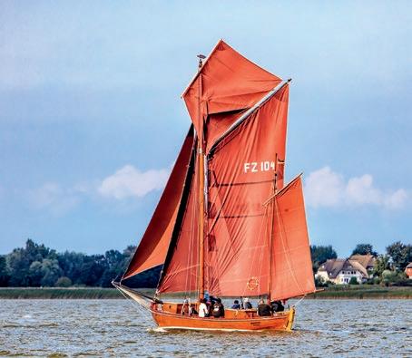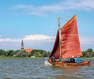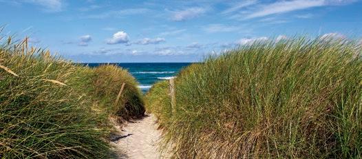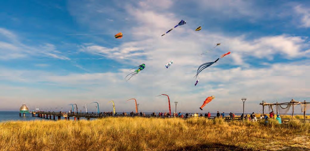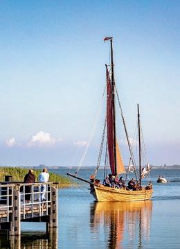 an einem der bedeutendsten Kranichrastplätze Europas. Dass auf Fischland-Darß-Zingst nicht nur dieser Glücksvogel, sondern auch Europas größter Greifvogel beheimatet ist, erfahren Sie vom Seeadler-Landeskoordinator Mario Müller. In der Abenddämmerung lädt Sie Martin Hagemann dazu ein, die Schönheit des Recknitztals bei einer geführten Kanutour zu genießen. Sagen Sie „JA“ zur Standesbeamtin Beate Schulz, die von wahrgewordenen Traumhochzeiten am Meer berichtet und entdecken Sie die Sonne, die nicht nur über den Frischvermählten scheint, sondern auch als Symbol die Türen vieler Kapitänshäuser der Region ziert. Ein Blick in die Werkstatt der Brüder Roloff zeigt Ihnen, wie die buntverzierten Darßer Türen entstehen. Diese und viele weitere Geschichten und Highlights erwarten Sie in diesem Heft. Lassen Sie sich von der liebenswerten Vielfältigkeit unserer schönen Halbinselregion für Ihren nächsten Urlaub inspirieren. Und nehmen Sie Kurs: auf Fischland-Darß-Zingst!
