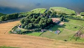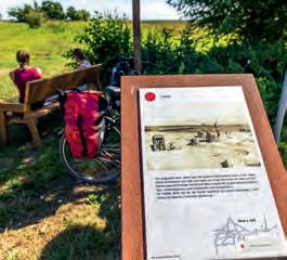 Die sanfte Hügellandschaft der südlichen Boddenküste bietet Weitblicke ganz ohne Treppensteigen – von der Stadt Barth im Westen über die Grabow und die Halbinsel Zingst bis zur Boddenküste bei Nisdorf im Osten. Am Weg zur Siedlung Fahrenkamp lädt eine aussichtsreiche Bank zur Rast ein. Dieser „Höhepunkt“ lässt sich gut als Abstecher in eine Radtour von Barth zum idyllischen Hafen Dabitz einfügen.
