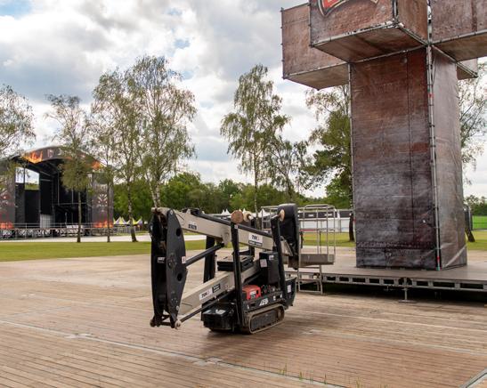 Deze Teupen spinhoogwerker staat klaar voor gebruik bij de opbouw van het Graspop Metal Festival.
