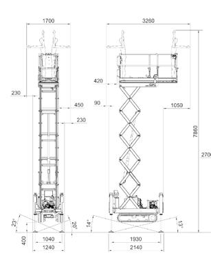 Werkhoogte 7,80 m Platform 0,79 x 1,50 m Uitschuif