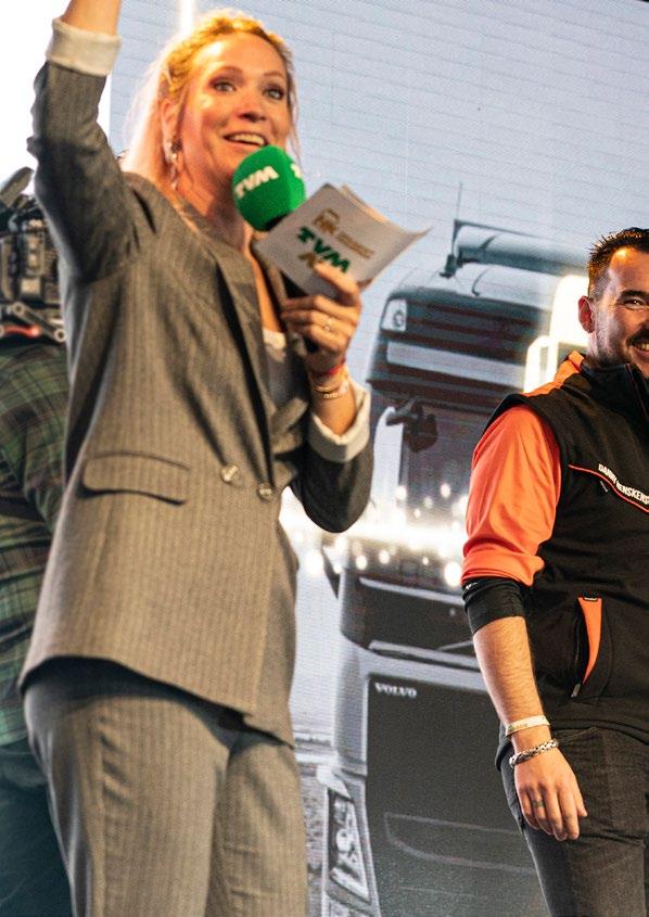 bekende tv-presentatrice die al jaren ambassadeur is van van de TVM Awards. Veel van de deelnemers laten zich maar wat graag met haar vereeu wigen voor hun vrachtwagen. Fotover zoeken waar Hélène steevast ‘ja’ op zegt, blijkt vandaag. Eenvoudigweg omdat ook zij het eervol vindt om deze dag te mogen presenteren. “Ik vind het echt tof om te merken met hoeveel bezieling de vrachtchauffeurs zich aan de proeven wagen. Aan alles merk je dat ze trots zijn op het werk wat ze doen. Dat stralen ze stuk voor stuk uit.”
