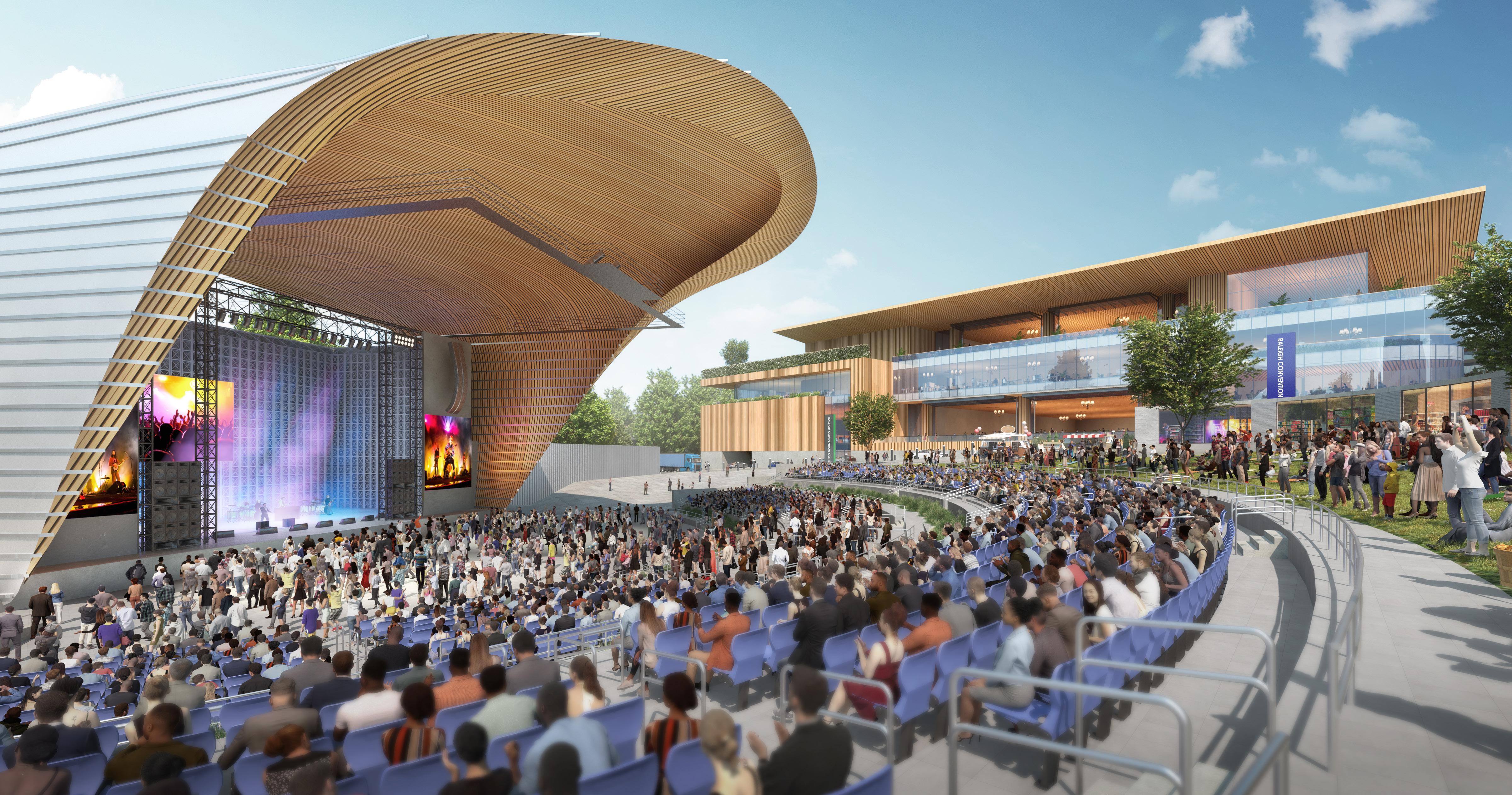 Riverside Amphitheater is set to open in 2026 and will attract worldclass touring artists for fans to enjoy. Located just outside of Kansas City, the thoughtfully designed amphitheater will have 16,000-person capacity and a sleek, modern look that will complement incredible views of both the city skyline and the Missouri River. A park-like plaza and expansive covered seating options will create a special atmosphere for music fans while backstage amenities will create a welcoming environment for touring artists.