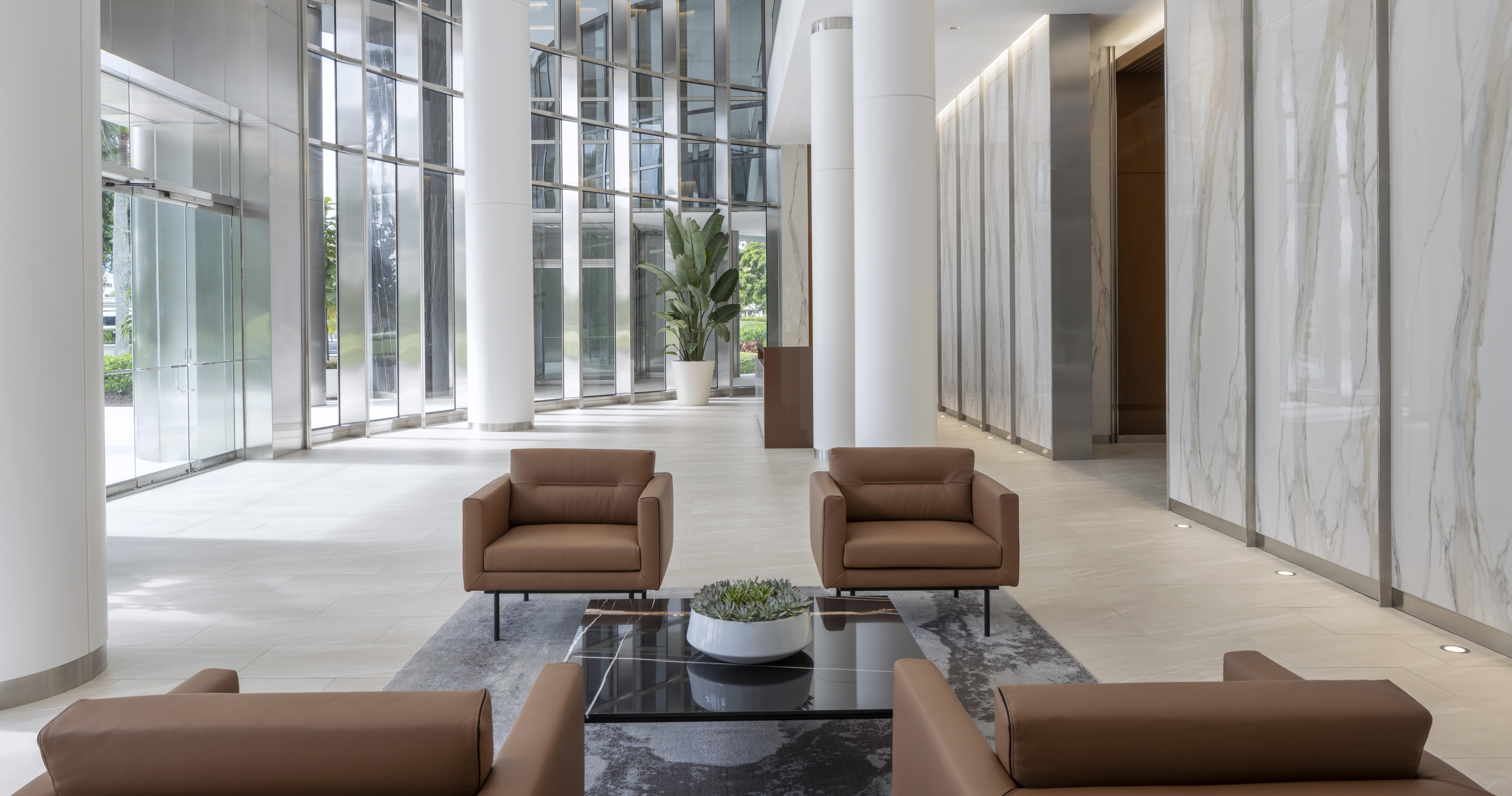 Furniture, a new reception desk and overall new improvements make this lobby space inviting and welcoming for all of their tenants and visitors, and now feel like it is more part of the Brickell aesthetic than ever before.