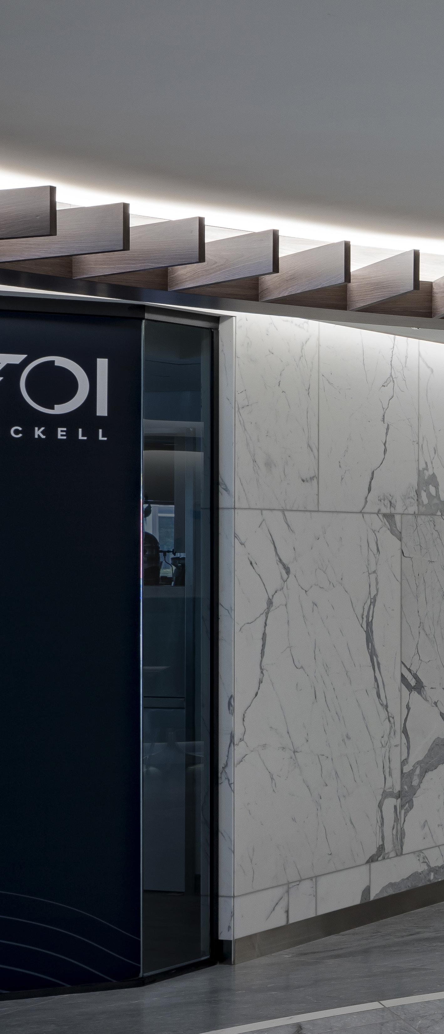 801 Brickell Avenue is in a prime district of Miami where arts, finances, luxury lifestyle and the ocean all happen to meet. Located at the end of a main street, 801 Brickell Avenue is a focal point to the city. The original design aimed to embrace this landmark and have the concept of outside/in. However, grids that looked acceptable for the exterior ultimately became too overwhelming for the interior. The strict use of natural daylight and no artificial light gave too much emphasis to the exterior and did not allow for an energized, activated interior.