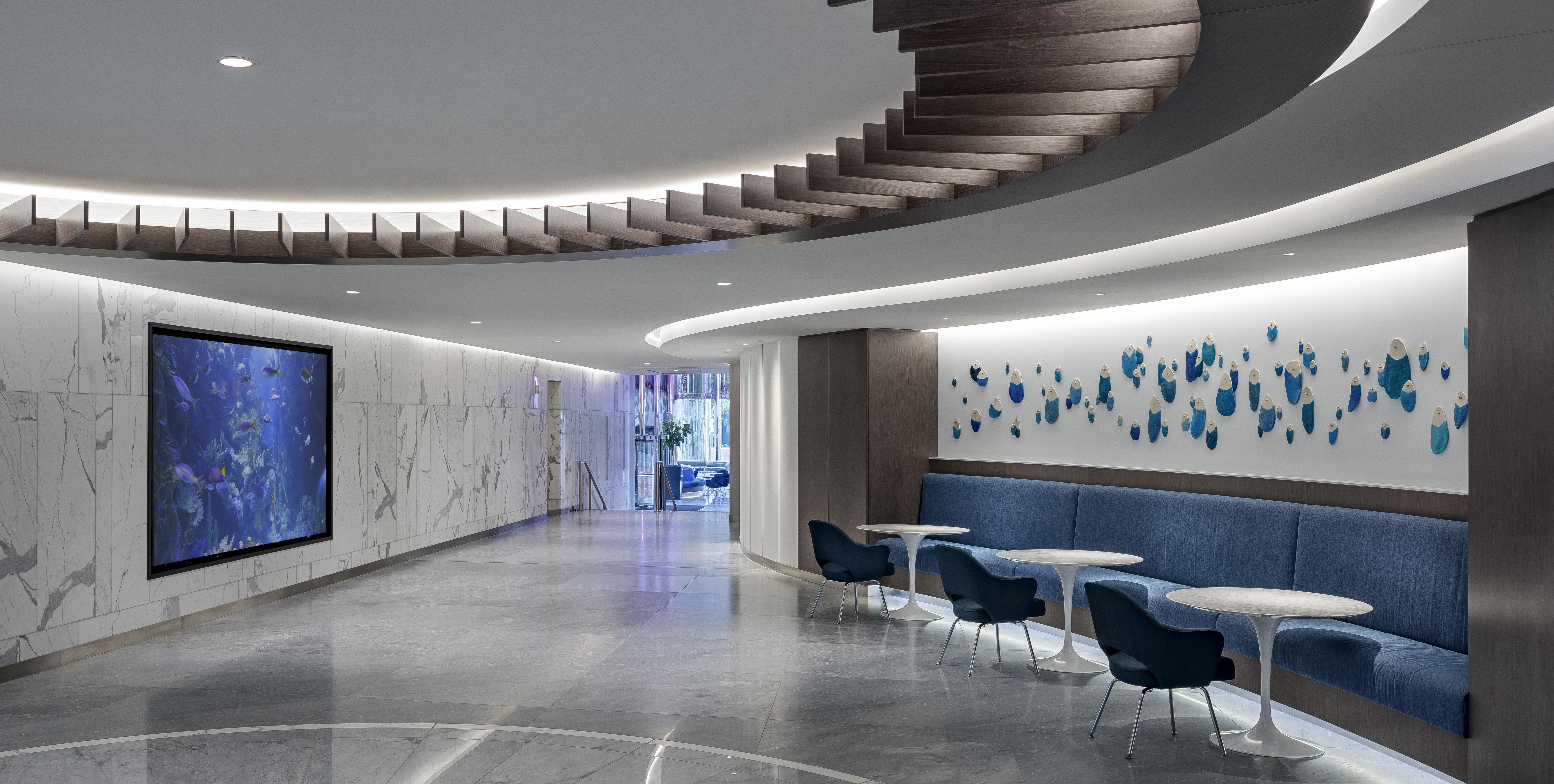 This building has world renowned tenants, and it was critical to keep this a Class A building where they would want to stay and renew their leases. Having high quality finishes and materials, pristine stone, cutting-edge design and details at every scale were extremely important during the design process.