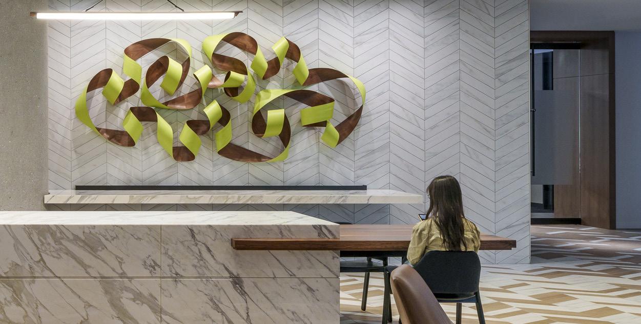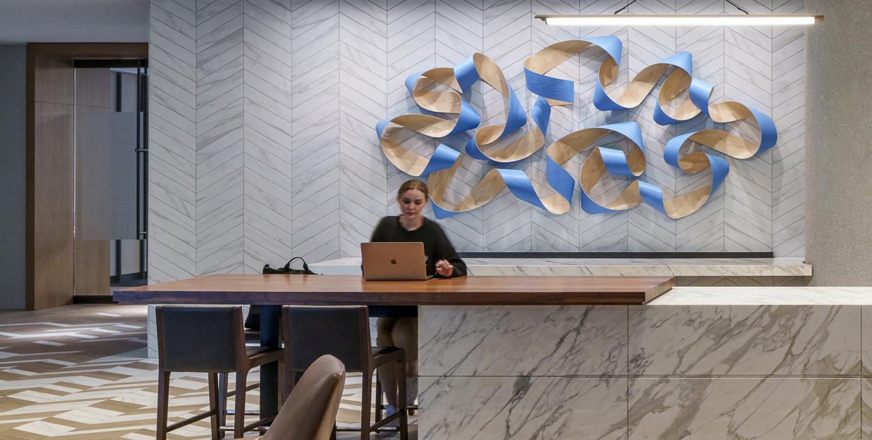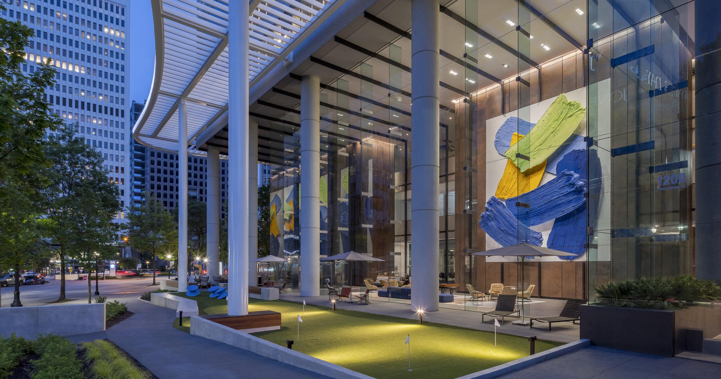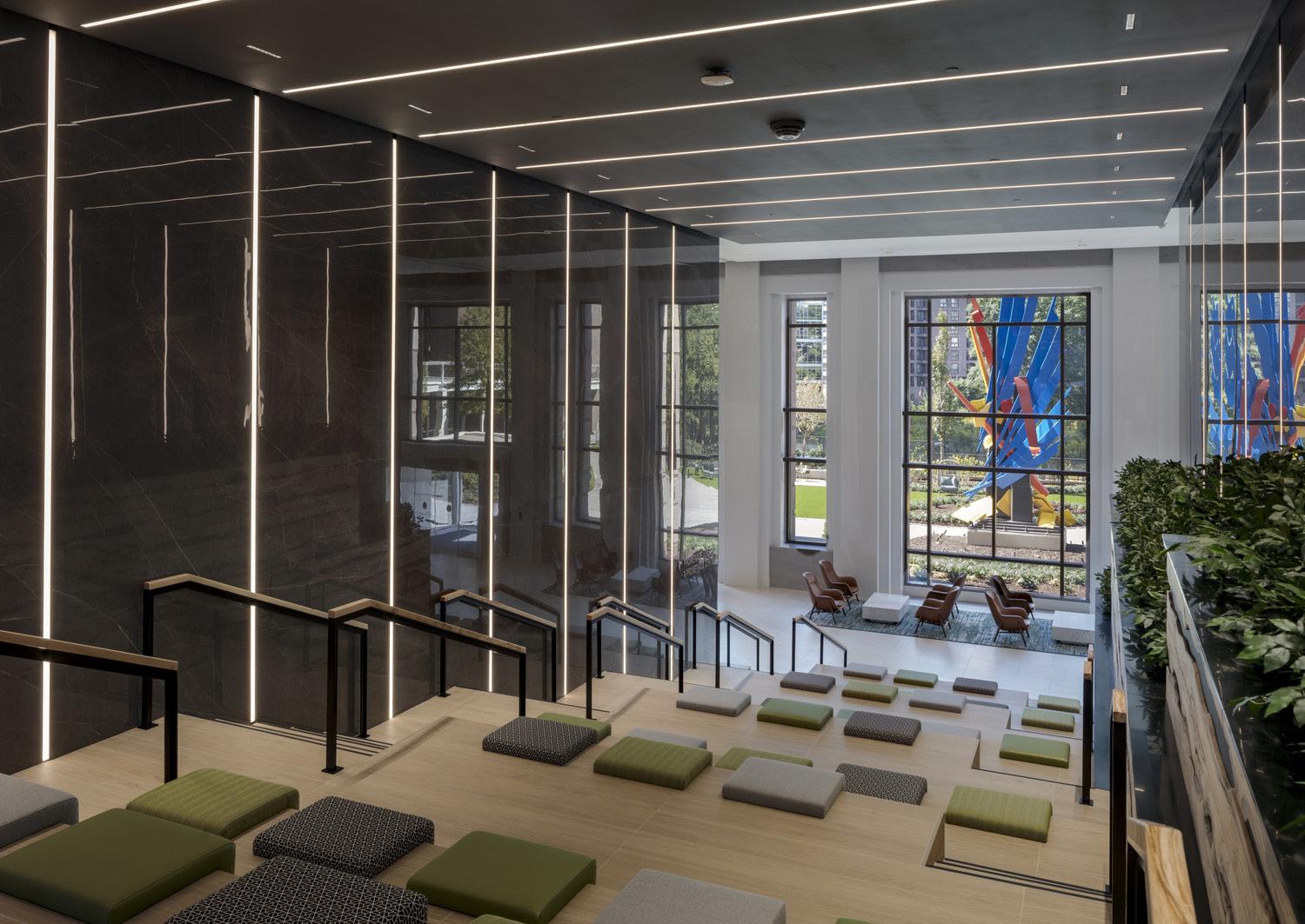 New signature artwork highlights the lower front lobby in an oversized dramatic statement. The new design and reposition strategy has been well received as new leasing commitments are very active.