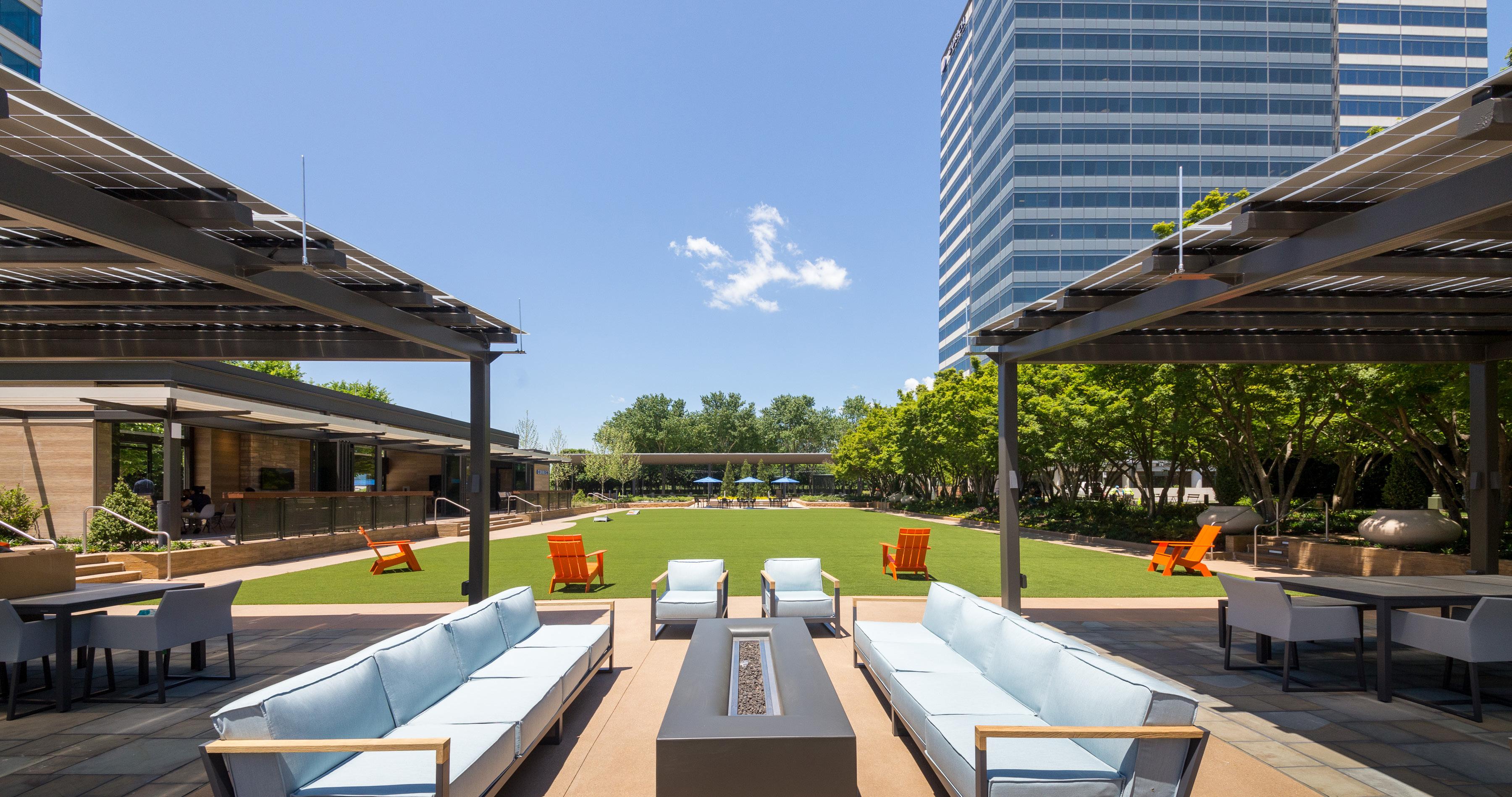 Perimeter Summit’s outdoor workspace transforms the office environment by blending functionality with dynamic spaces for activity. With solar-powered pavilions and expansive greenspaces, it offers an innovative setting for both work and leisure, ideal for events and daily engagement.