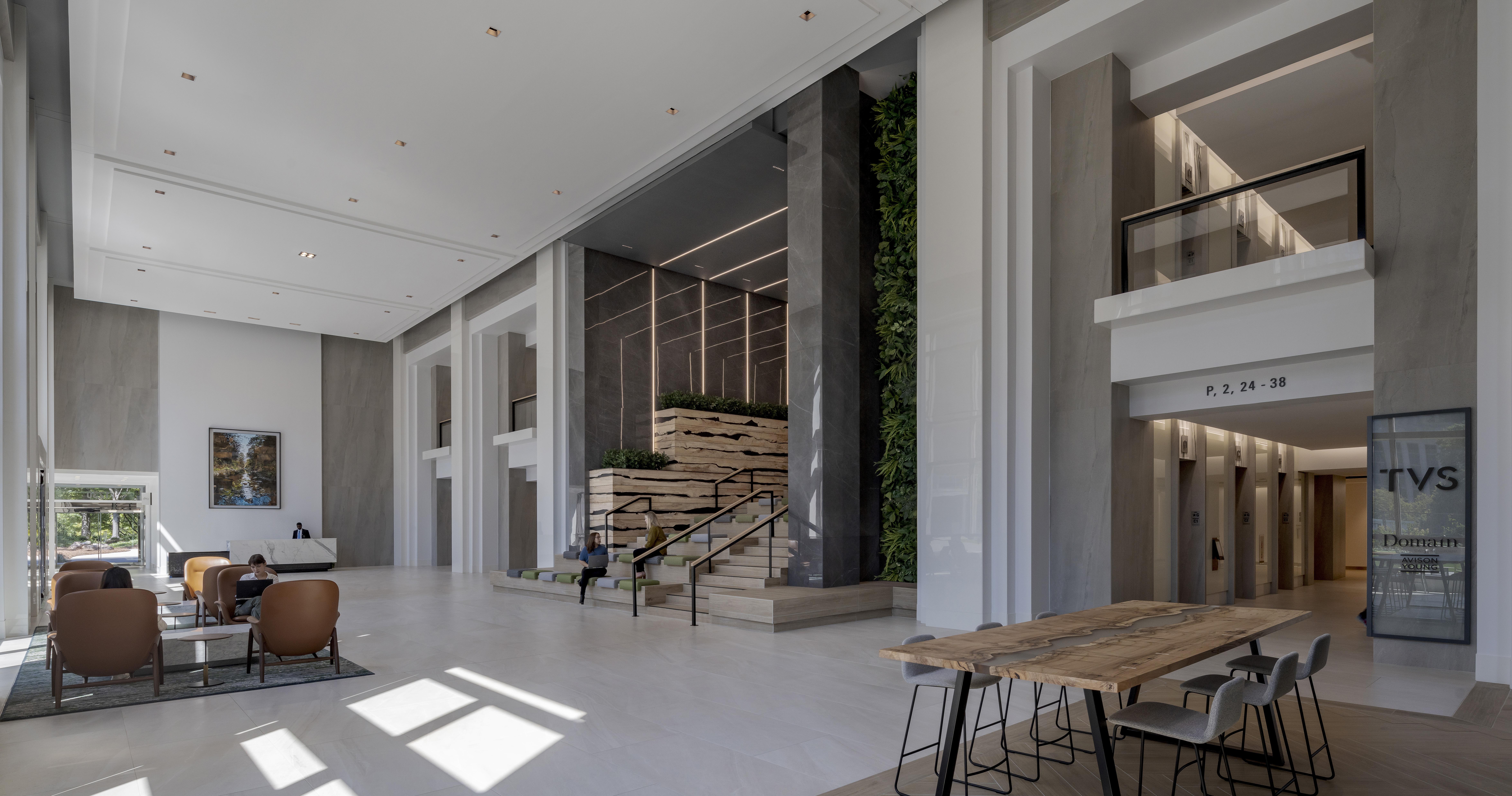 New developments create competition in the marketplace for office space. Over time, older properties lose their presence in the competitive landscape and tenants seek out the next best environment as their lease approaches term. Many of these properties, while still in prime locations, are great candidates to be revitalized, aesthetically refreshed and modernized to regain a market advantage. TVS recognizes the deep potential for these properties and has assisted many developers in transforming their office buildings into dramatic and experiential facilities with a fresh new appeal. Our approach is highly collaborative with our clients to assess the entirety of the property and identify opportunities for improvements. We comprehensively address the multiple experiences of arrival at the site and into the building, the public areas commons, lobbies, restrooms, elevators, retail, artwork, fitness centers and conference amenities. Our multidisciplinary design team provides holistic solutions that are carefully crafted to support the financial investments of the project. The results are extraordinarily transformative. Working together with our clients, we communicate with the real estate community to promote the new story and reestablish the property as a sought after destination for top-tier tenants.