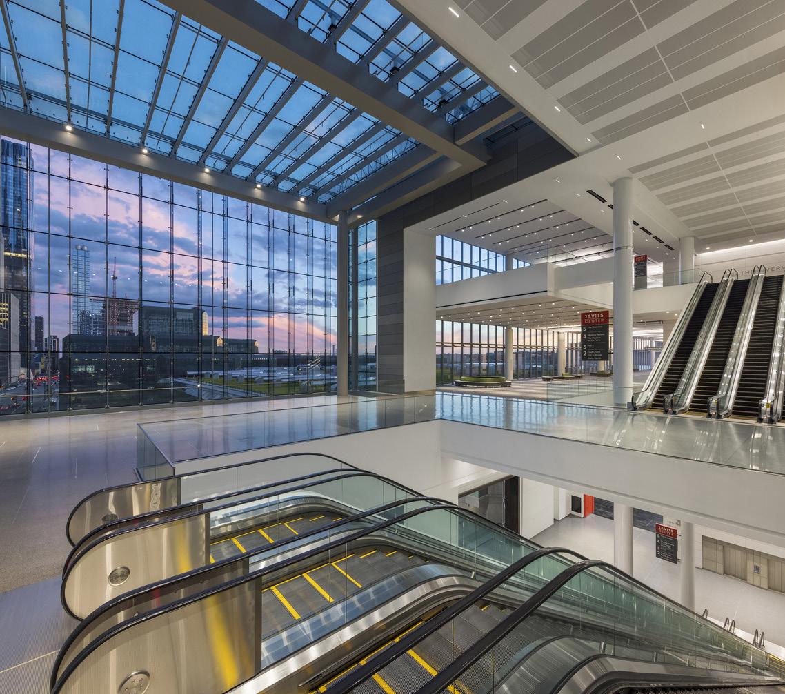 A 100-person onsite and colocated team designed and constructed the 1.2 million sf expansion spanning two city blocks. This included the addition of 90,000 sf of exposition space, 200,000 sf of prefunction and meeting room space, a 6,000-person special event space, and a four-level truck marshalling and loading dock structure. The new loading docks are a key component of this project, as they remove thousands of idle trucks from the surrounding city streets, thereby alleviating congestion and improving air quality for nearby residents. During the design process, the scope of the project was expanded to include a rooftop pavilion, an outdoor terrace, and a one-acre urban farm.