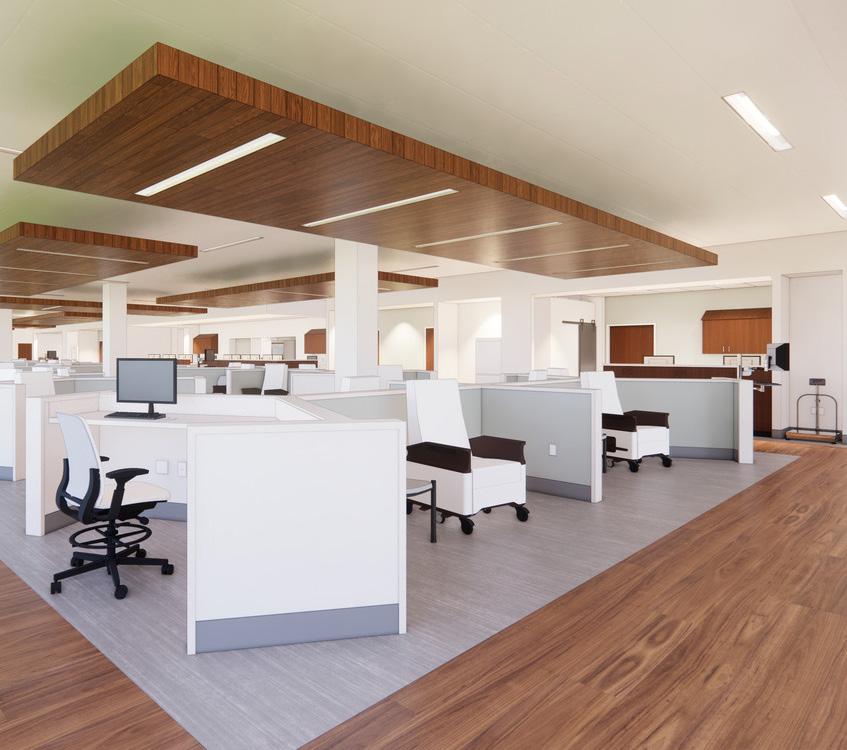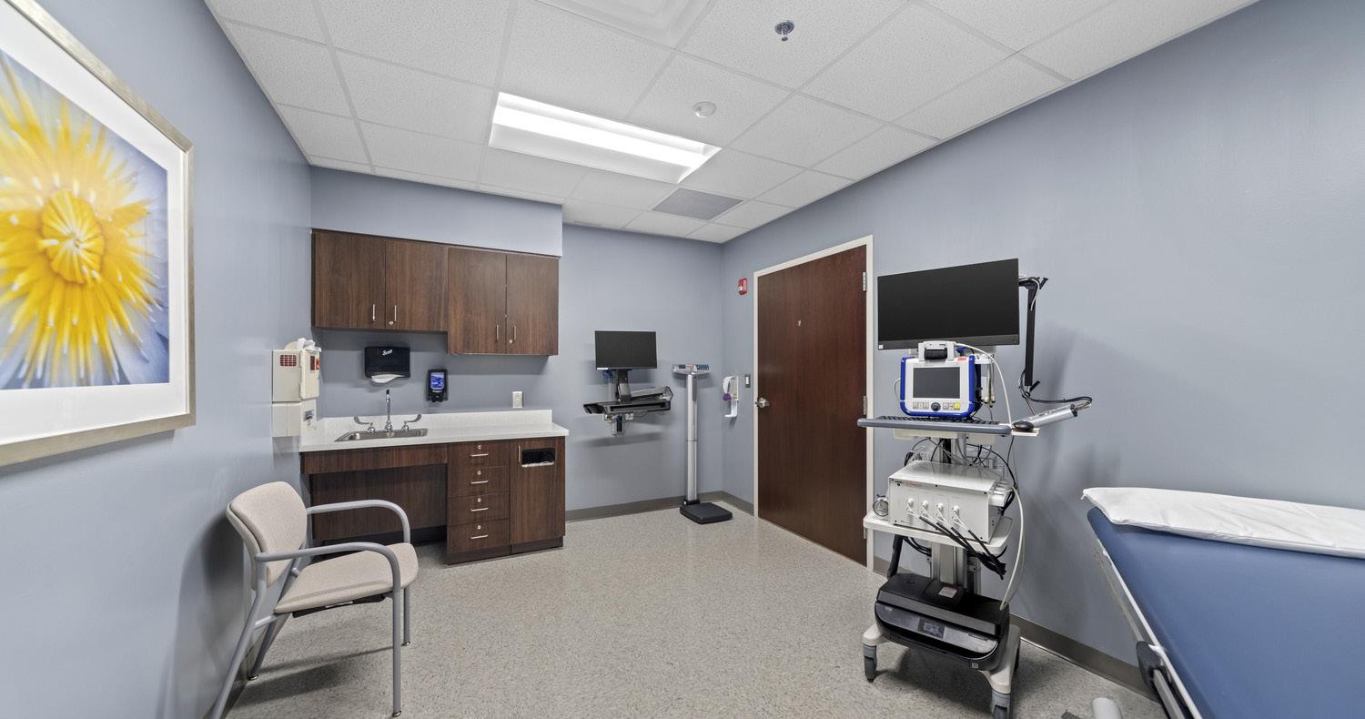 Phase two expanded the current cardiovascular medicine suite (CVM) on the first floor into the 4,300 sf spaces recently vacated by the cardiac rehab gym and cardiac diagnostics.