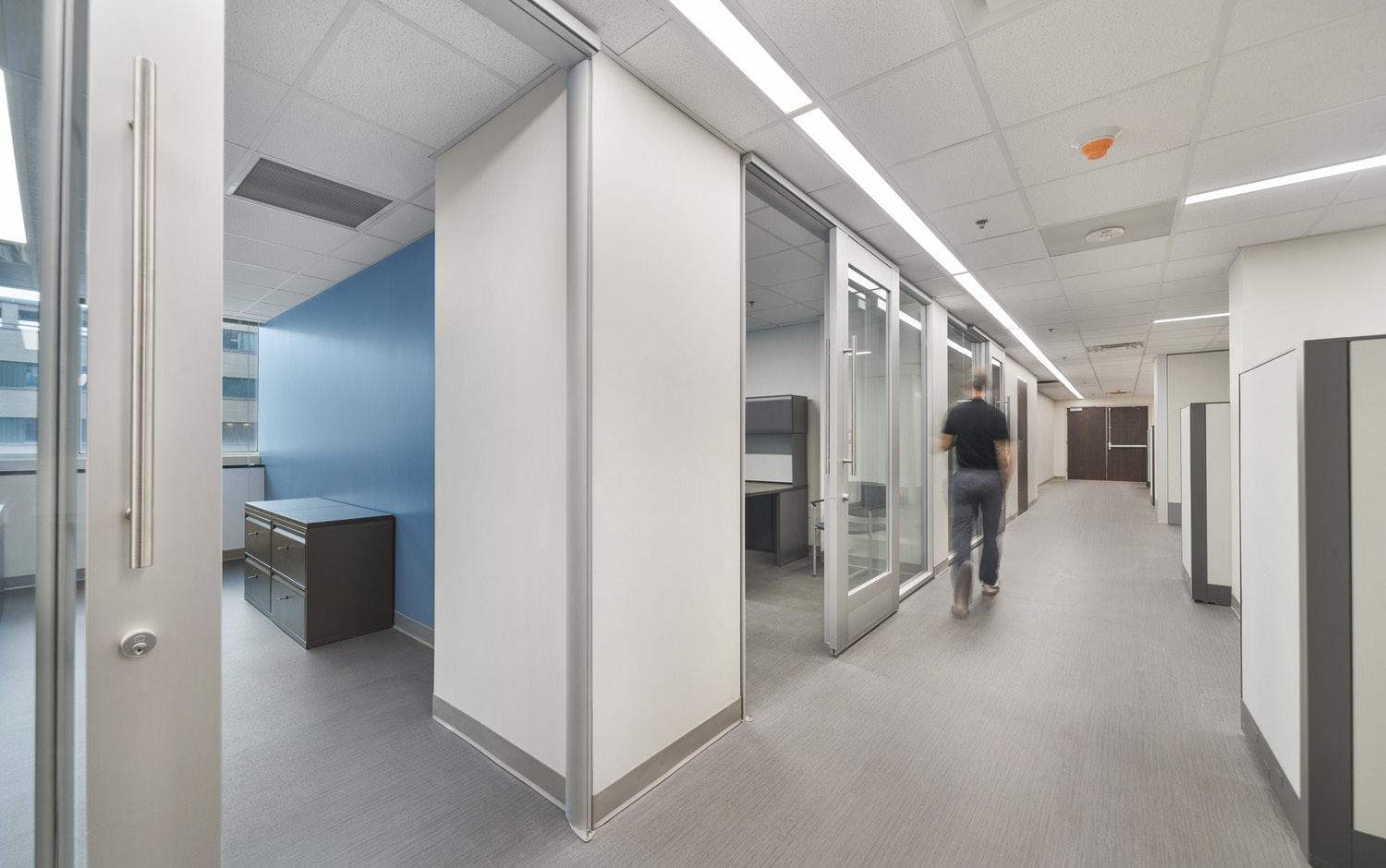 The design team’s focus wasn’t necessarily to pursue points to certification. It was to do the best job possible across all aspects of the projects , given very challenging budgetary and time constraints. When considering design options, the team weighed them for their nearand long-term impact on the firm’s collective wellbeing – what solution would be the most equitable, provide the best environment to do good work, use resources most effectively and sustainably?