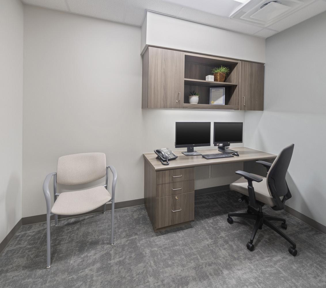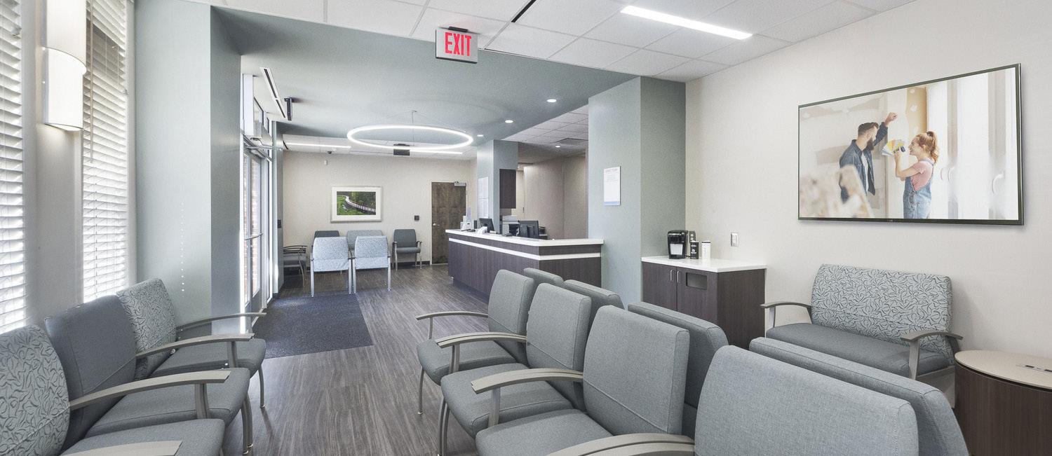 Wellstar purchased a stand-alone, two-story medical office building across the street from their Douglasville hospital. This 12,000 sf building was renovated to incorporate a new urgent care on the first floor and a shared suite for orthopedics and gastroenterology practices on the second. Designing the space to allow for future business growth and an X-Ray room on each floor, the project included a full demolition and renovation on the second floor, while repurposing existing rooms into exam rooms on the first floor. Finish materials were updated throughout the facility to meet current design guidelines, as well as furniture and artwork packages for each user group, resulting in a full-service interior design effort.