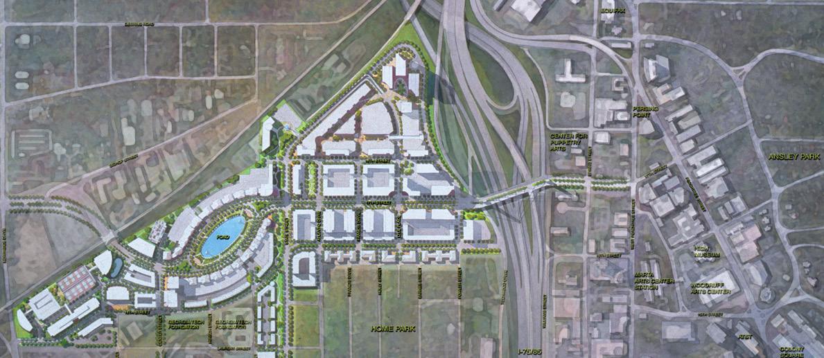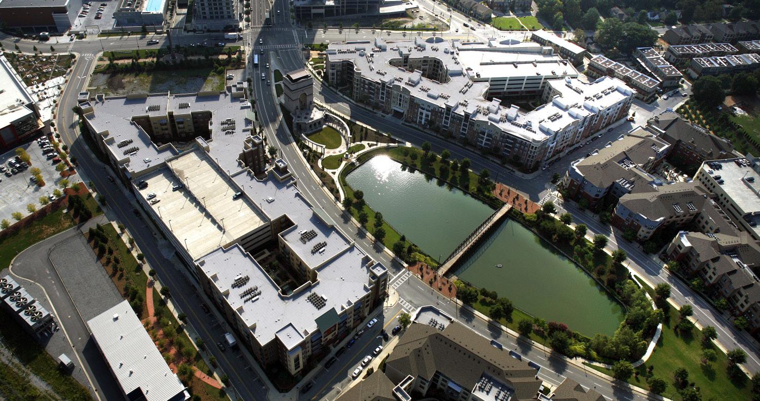 TVS undertook one of the nation’s most ambitious brownfield master planning projects on the environmentally reclaimed Atlantic Steel Mill site. Atlantic Station is a vibrant mixed-use community surrounded by a renewed midtown, Atlanta’s main interstate highway connector, and Georgia Institute of Technology. TVS’ planners tightly knitted the project into the urban fabric beyond Atlantic Station, connecting the neighborhoods with bridges on east and west borders, including new links to serve the arts center transit station. Three districts create a comfortable sense of community and maximize development potential. The ‘Commons’ is the central residential neighborhood.