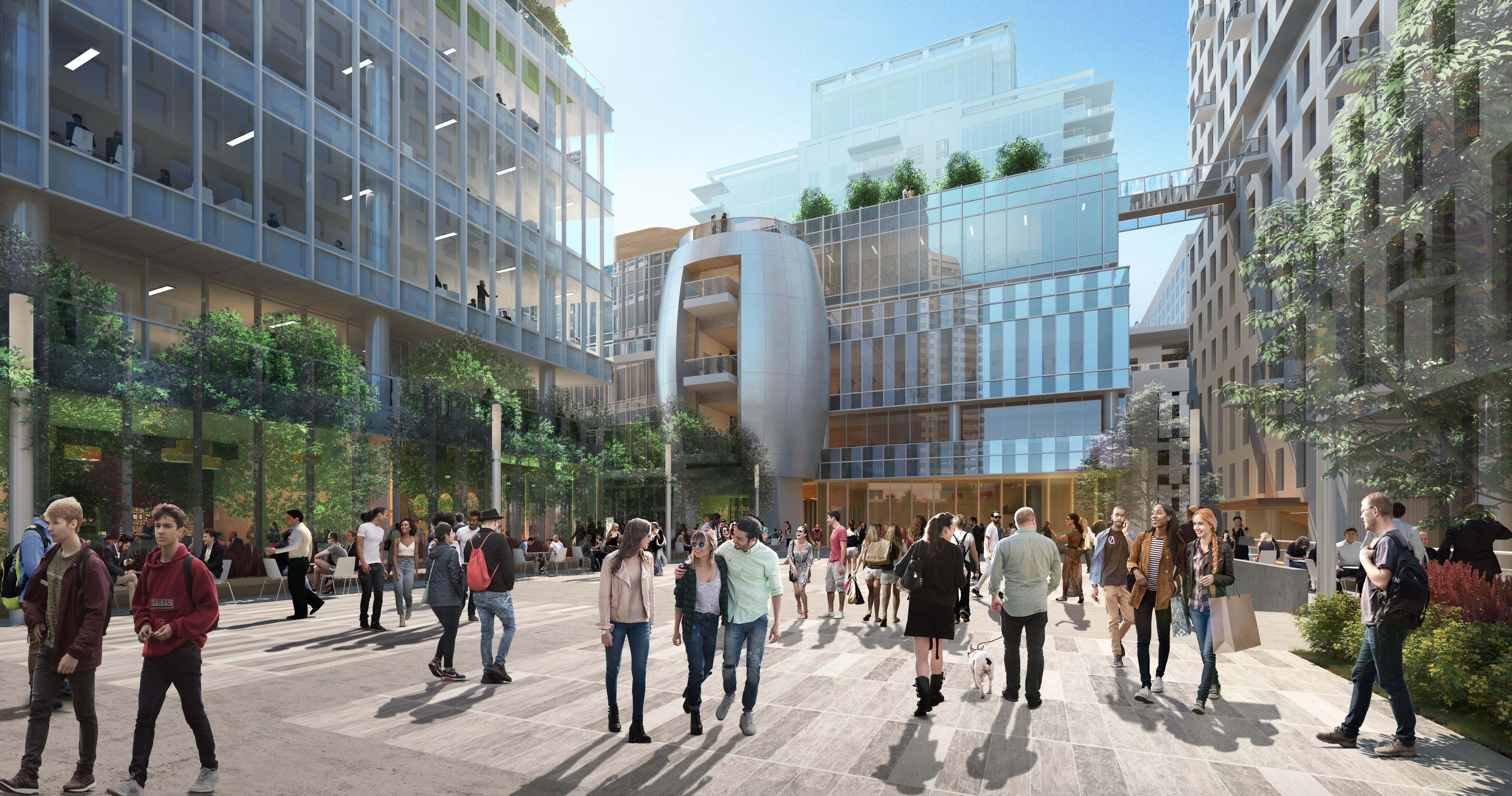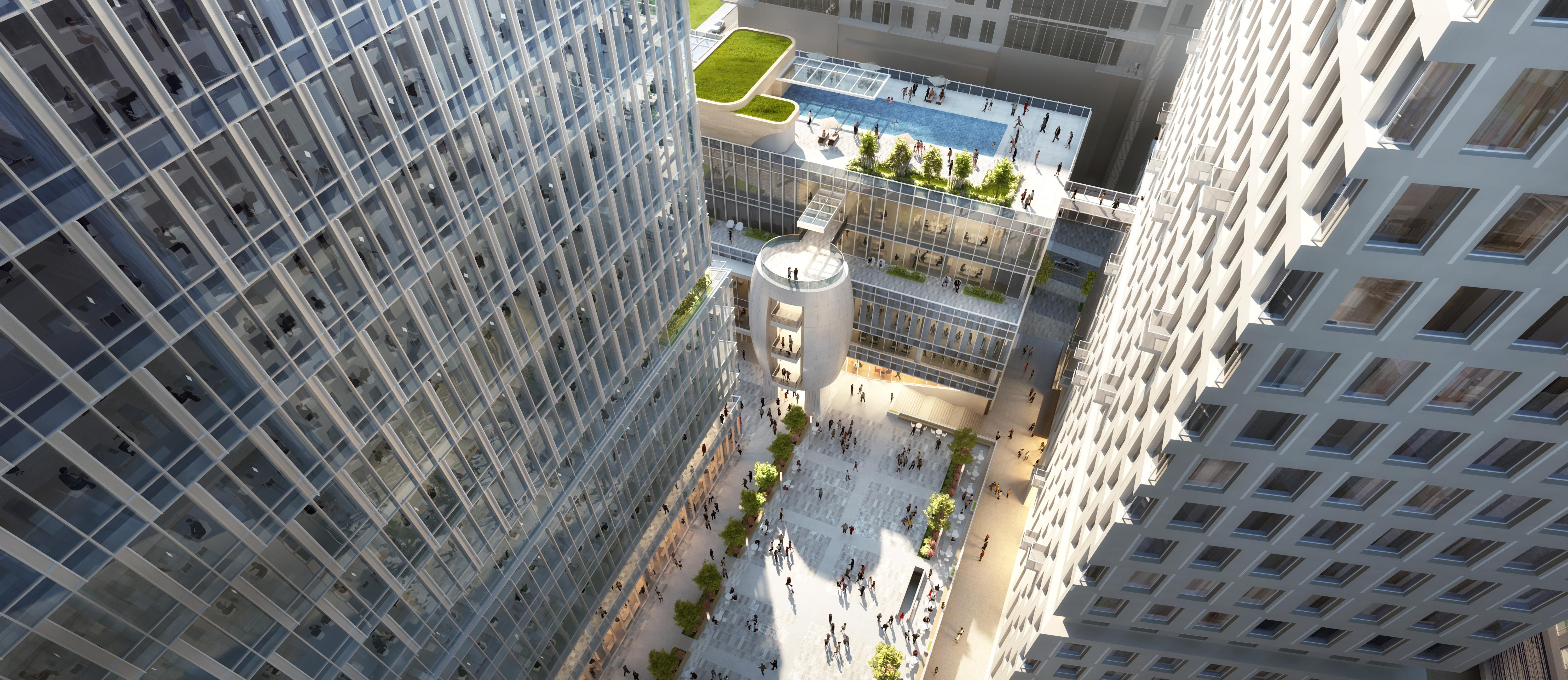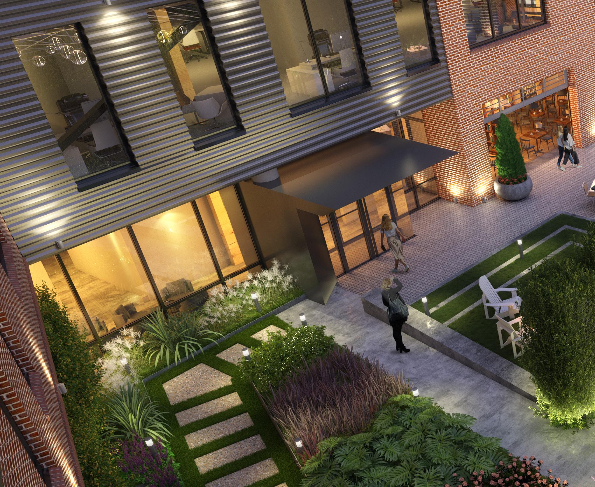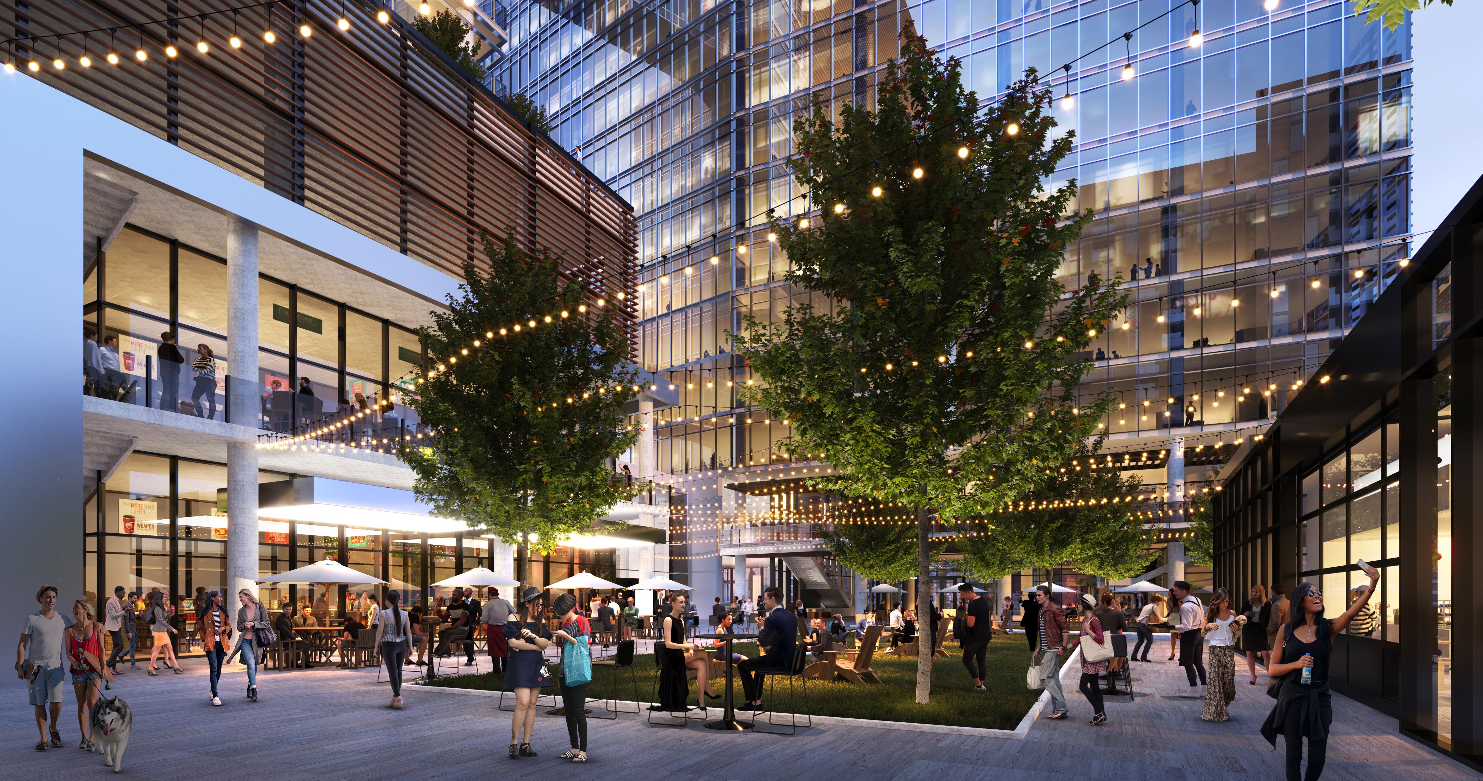 Unique in its vision for shared economy, each programmatic component is in synergy with accessible public spaces, a variety of food and beverage offerings, co-working and event spaces all surrounding a common courtyard.