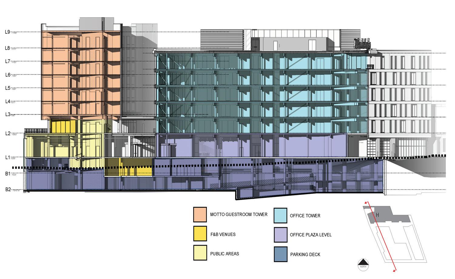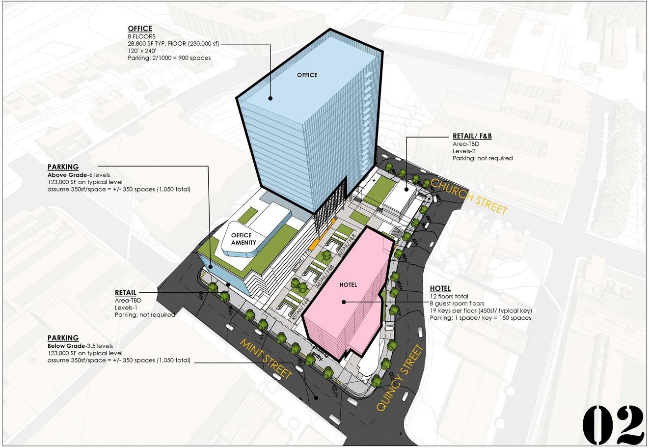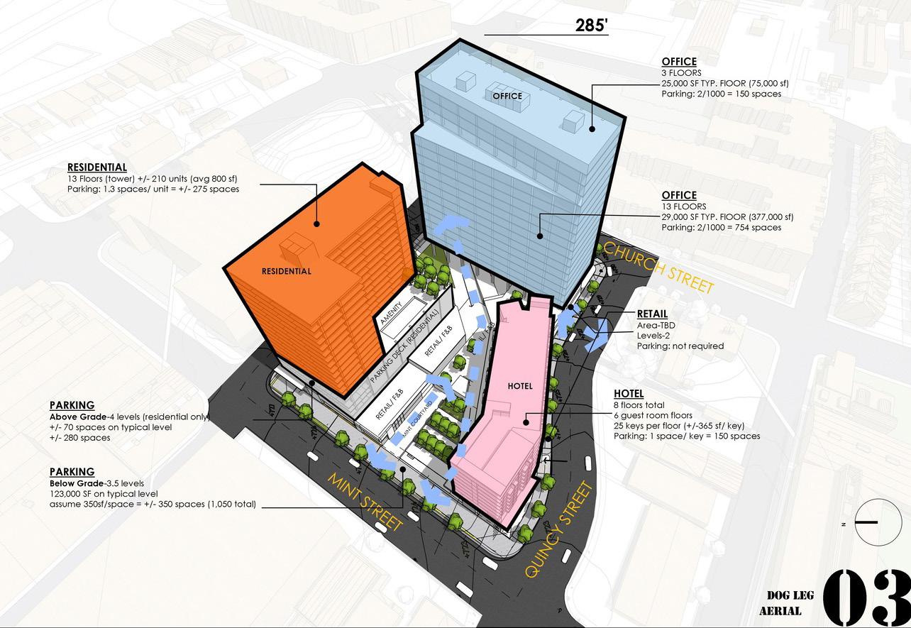 - 291 key hotel - 300 apartments - 4,900 sf retail / restaurant