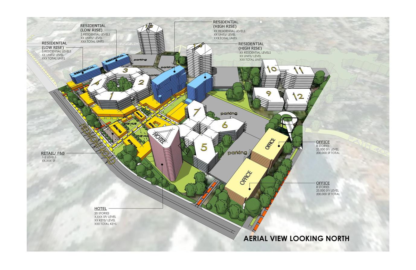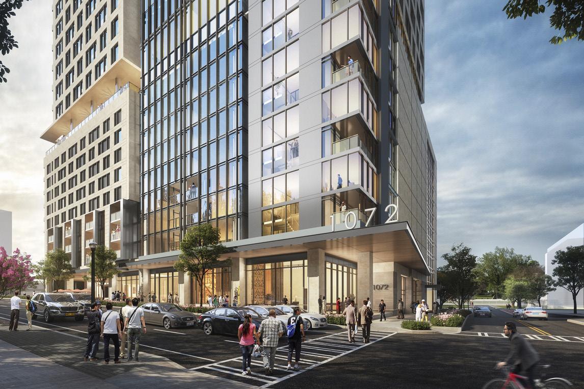 Given the significant footprint of the program, energy efficient, sustainable principles will also inform the design of the new 1072 West Peachtree tower. To enhance the street level experience of 1072 West Peachtree in the 24/7 live/work/ play environment of Atlanta’s Midtown district, the 850-space parking structure will be screened from public view by a street-facing ‘liner’ of creative loft duplex apartments.