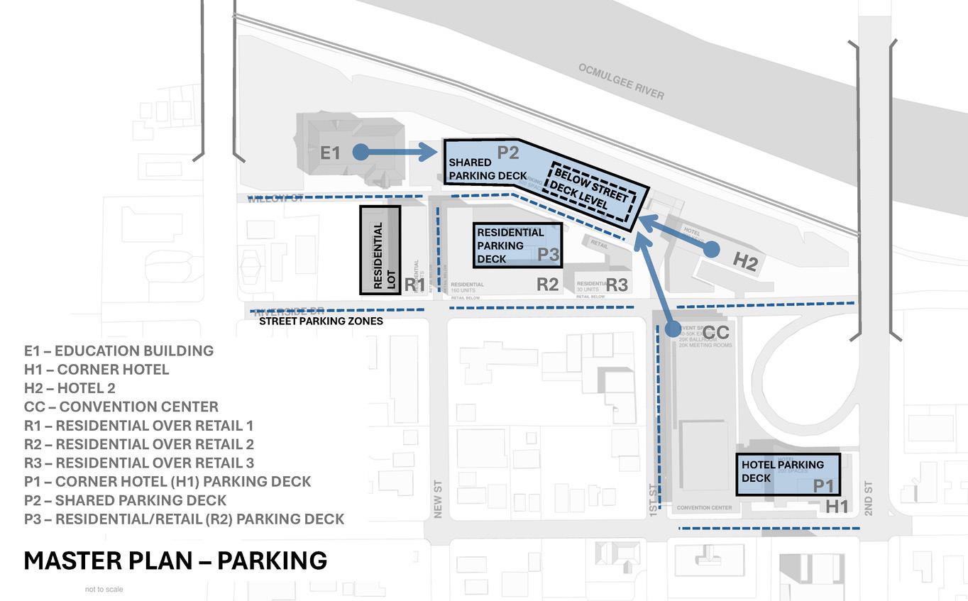 Macon’s downtown remains a rich architectural collection of new and historic building stock organized around a walkable and well-planned city grid. This master plan explores extending this grid along its eastern edge, where the grid meets and is interrupted by the rail line and Ocmulgee River.