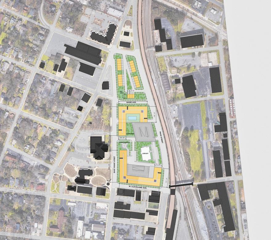 East Point Commons is a mixed-use project at the core of the City of East Point. The project features more than 300 residential units, both market rate and affordable, and includes retail, restaurants, a library, grocery store and community gathering spaces. This transitadjacent development ties the center of the city together and engages transit and the PATH multi-model pedestrian route to engage the city and create a destination for the community of East Point.