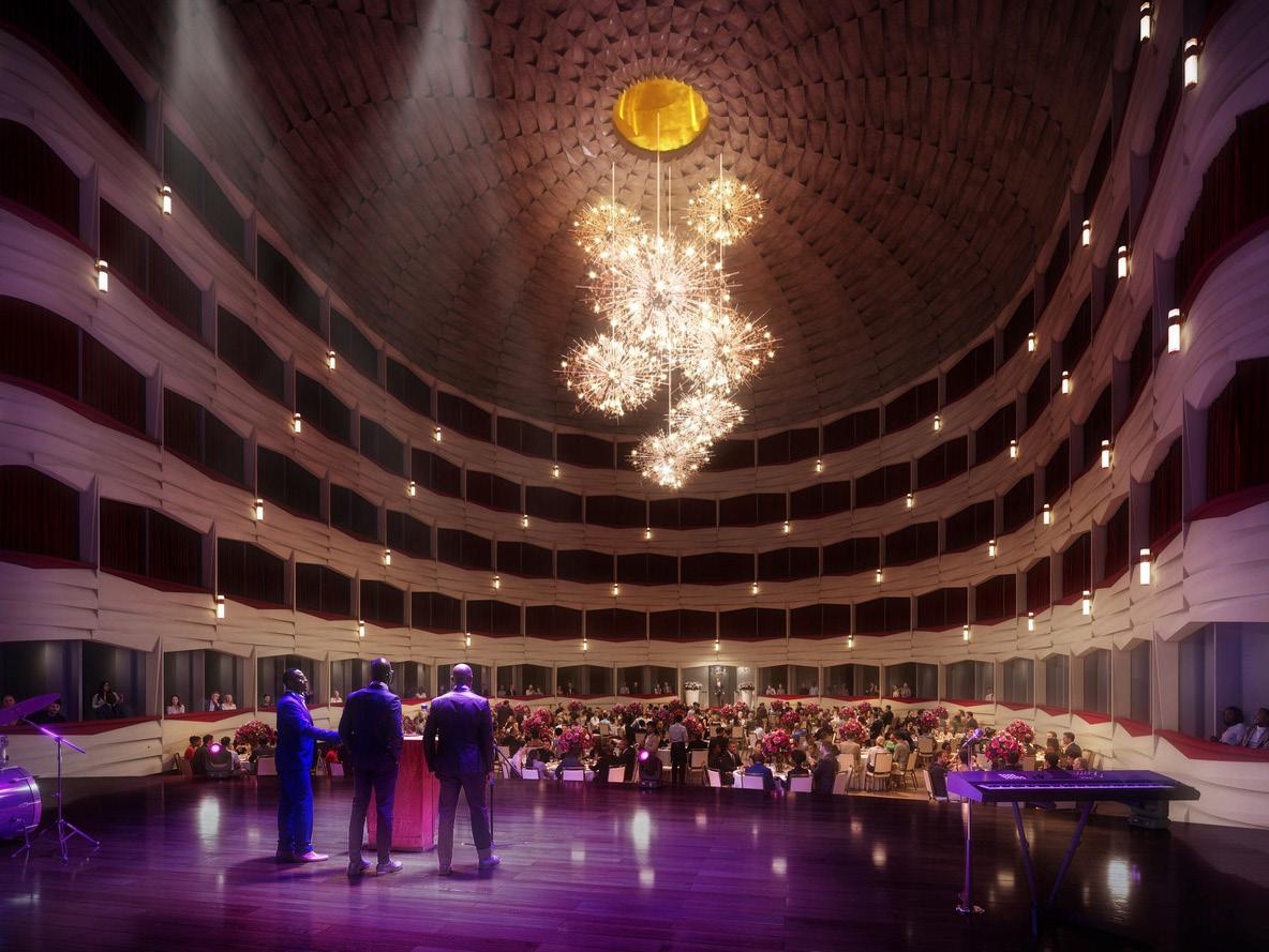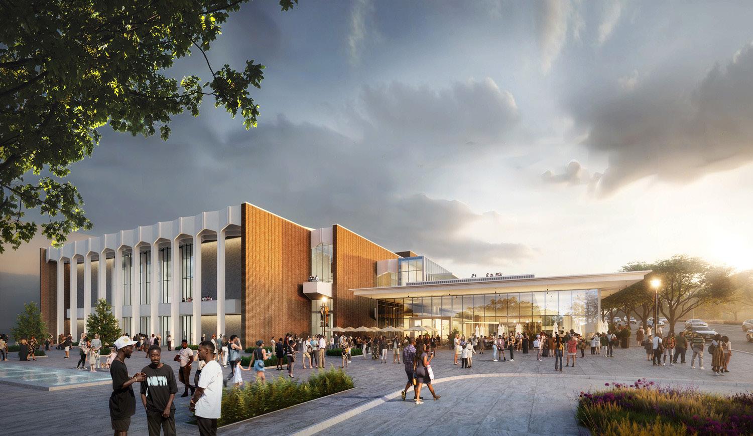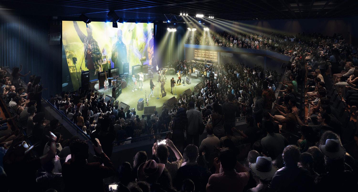 The project envisions a renovated civic center to celebrate and grow Atlanta and Georgia’s music industry. The arts portion of the master plan include two main pieces - a former exhibit hall transformed into a concert/restaurant/retail venue and an expansion to the performing arts center. The existing column-free exhibit hall building is repositioned to house a 1,600 seat concert venue supported by a destination restaurant and retail storefront. The design takes advantage of the substantial structure of the existing exhibit hall to leverage flexibility for multiple stage configurations. The venue sits adjacent to a large urban pedestrian plaza with access to public transit, retail, restaurants, and other district amenities. Vehicular access is arranged around the plaza and provides for discreet service access.