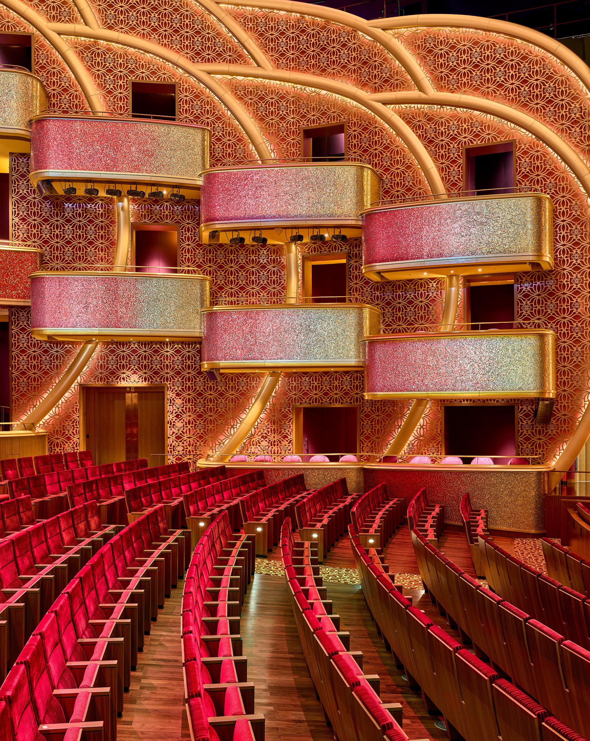 The overall design of the Grand Theatre and all its intricate layers celebrates the luxurious level of craft and design that reflects the richness of color, detail and pattern of India making this a singular world experience.