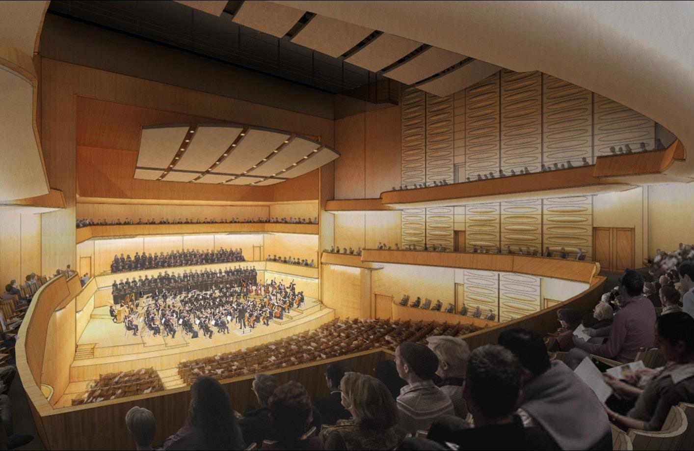 In the Symphony Hall Renovation and Redesign Study, TVS worked with Aurerbach Pollock Friedlander (theater consultant) and Threshold Acoustics (acoustic consultants). The 46-year-old Symphony Hall would be completely transformed through this redesign, which includes dramatically improving the acoustic performance of the hall to serve the needs of the classical symphonic repertoire of the Atlanta Symphonic Orchestra (ASO) and the active, diverse presentations that appeal to younger audiences of the ASO Presents program. In addition to transforming the hall’s acoustic performance and design, this renovation and expansion study also addressed the development of support and rehearsal space. A new glass enclosed wing would allow the public to observe rehearsals in a new rehearsal hall and would provide a meet and greet space for performers and patrons after events.