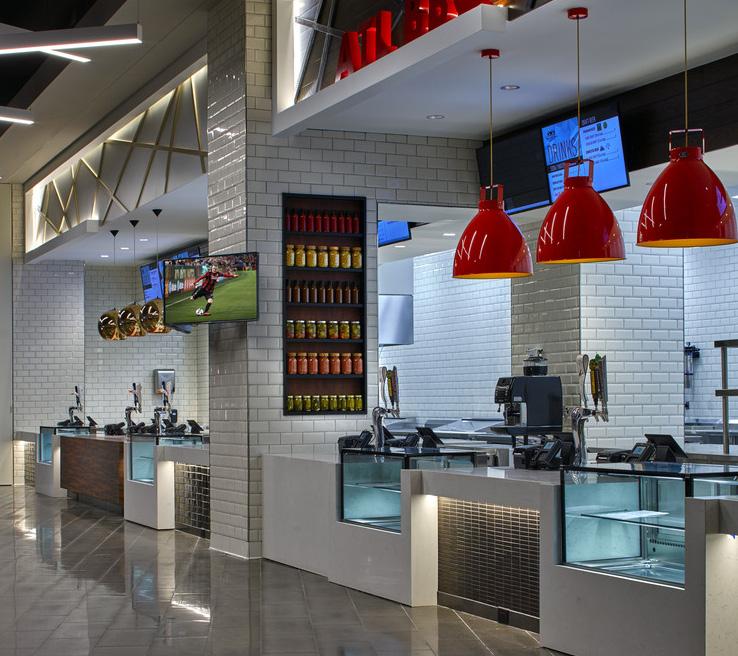 TVS created 250,000 sf of hospitality-inspired premium clubs, suites and concourse zones that reinvented the game day experience. The client wanted an iconic, unparalleled fan experience that would get fans off their sofas and away from the convenience of their home environments. The new stadium had to be compelling enough to keep the fan coming back. The result more than met the client’s desire – guests are arriving early to the game and leaving late, enjoying all the stadium has to offer. A testament to this response is that more food and beverage is sold now before the beginning of the game than was sold during the entire game at the old Georgia Dome. The stadium’s distinct hospitality-driven spaces provide options that appeal to a variety of demographics, serving as multifunctional alternative revenue streams and elevate the guest experience. The client wanted these premium spaces to become the benchmark for best in class spaces, not only in the sports and entertainment industry, but across all luxury guest services industries. Today’s stadium-goers are seeking memorable, authentic and highly personalized experiences that deliver the unexpected.