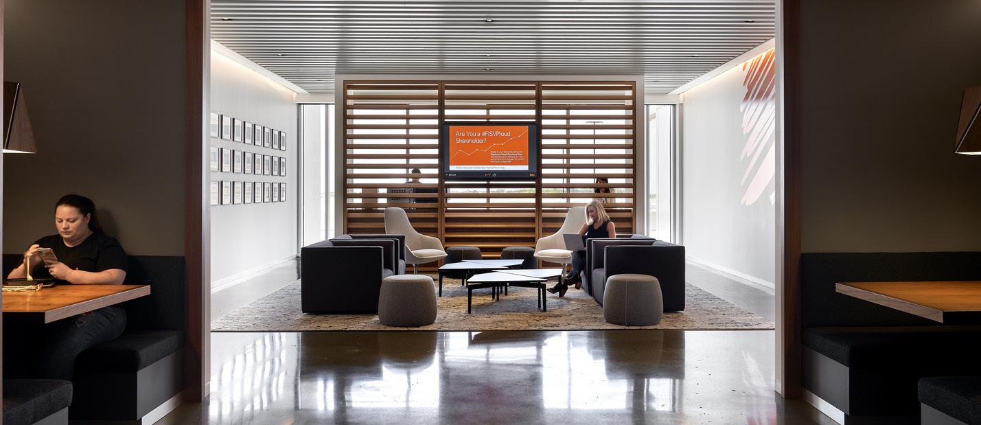 From the wow-inspiring front lobby to the tech-enabled work spaces, clients and staff alike are immersed in the Fiserv brand. Each floor is equipped with high-speed internet and a combination of both individual and community spaces that give employees the choice to work in a variety of settings that suit their needs. Other employee amenities include a café, cafeteria, conference/training center, client briefing center, fitness center and health clinic.