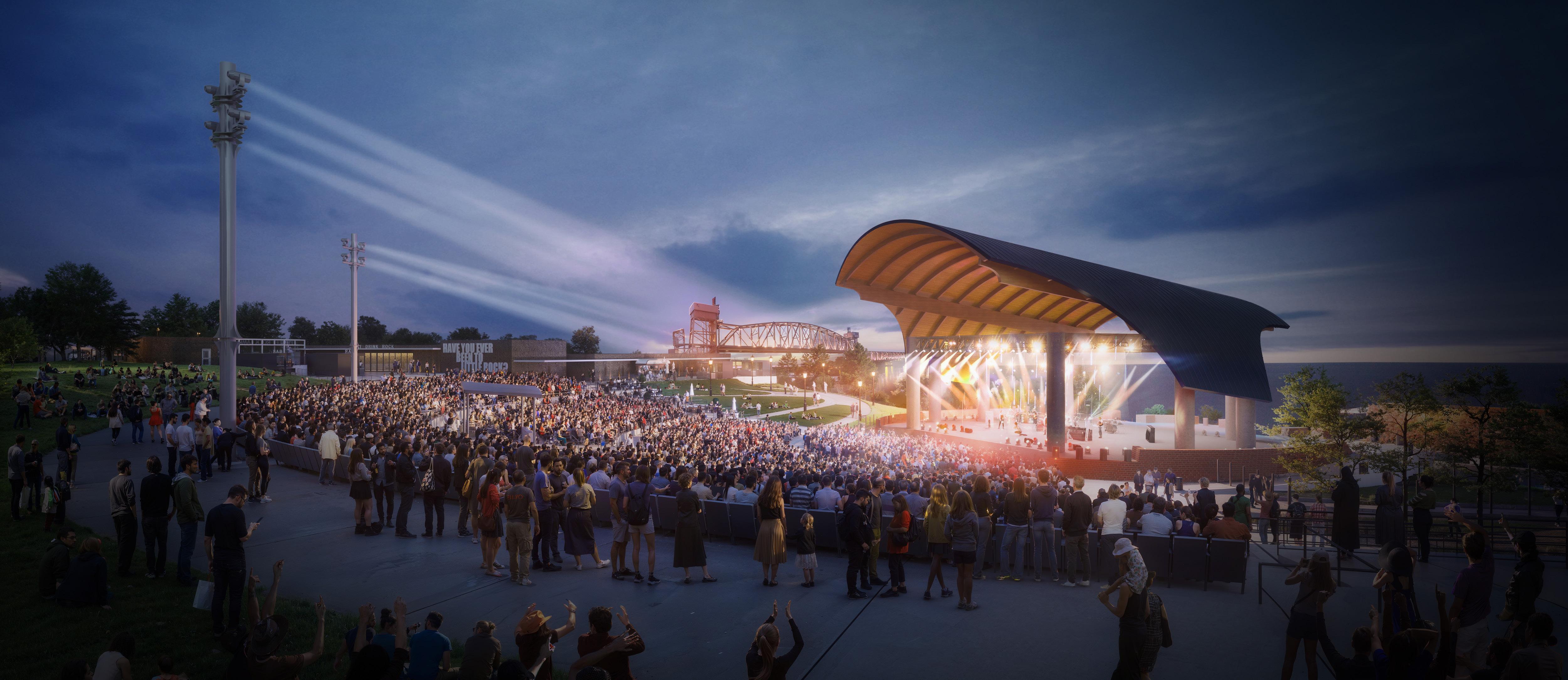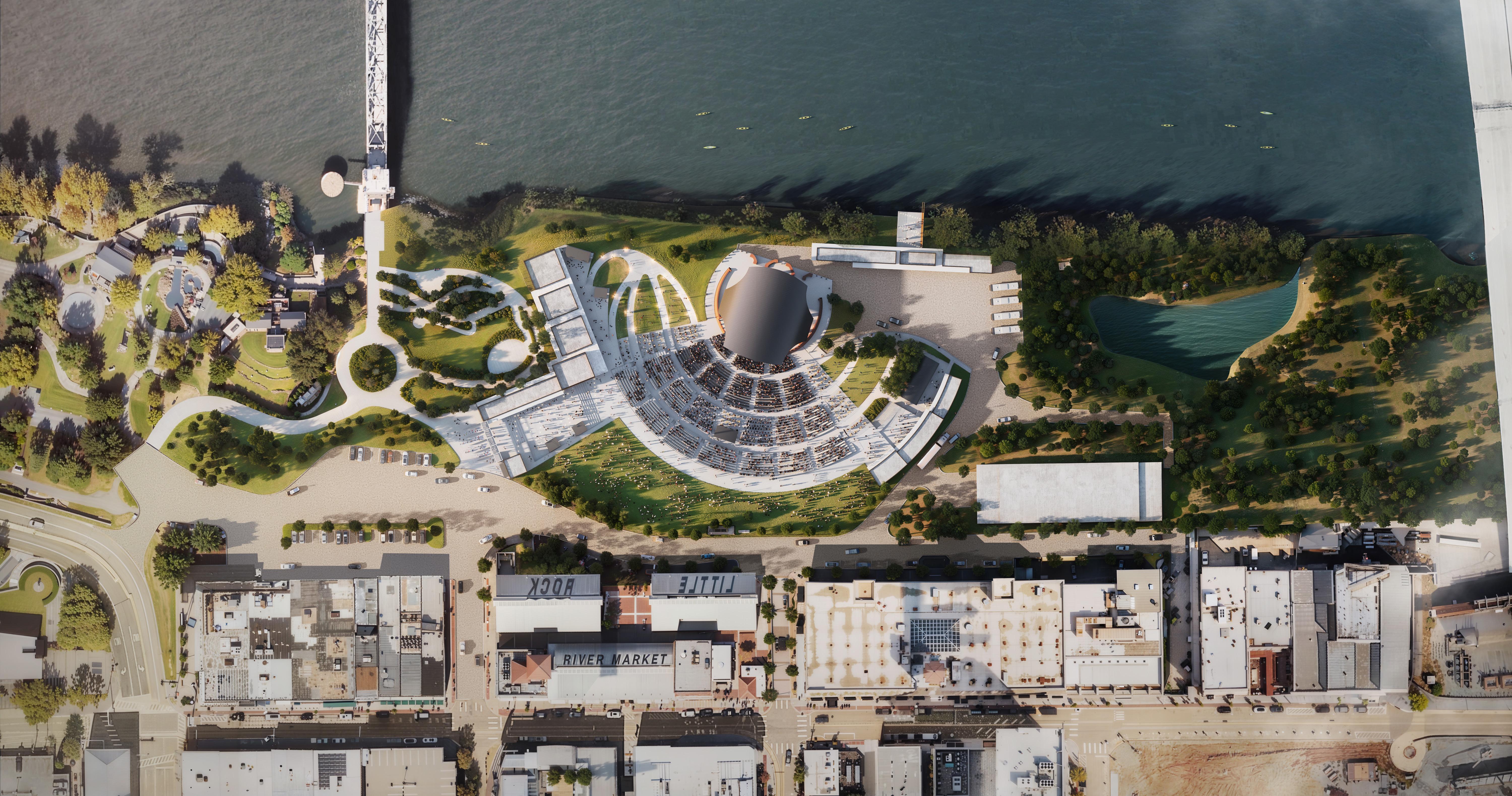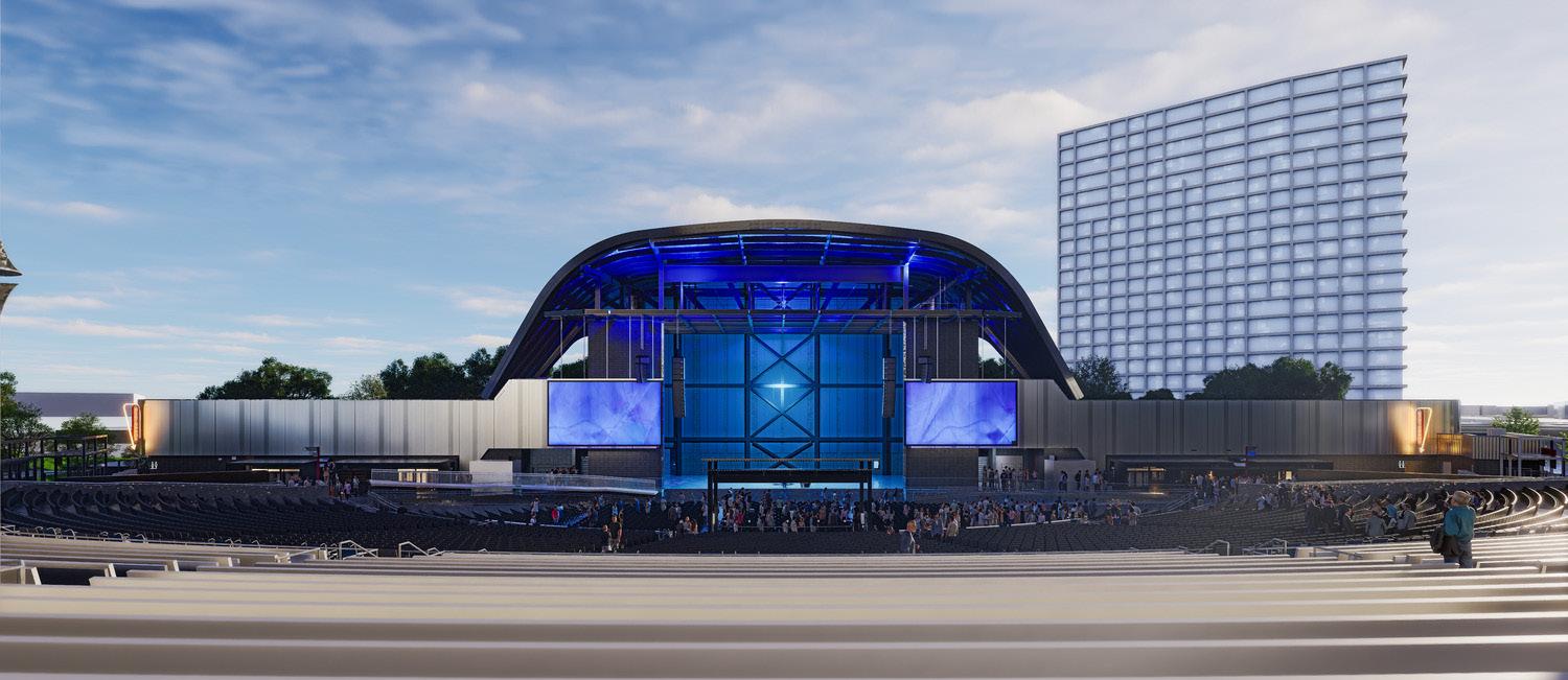 Riverside Amphitheater, designed in collaboration with Generator Studio, is set to open in 2026 and will attract world-class touring artists for fans to enjoy. Located just outside of Kansas City, the thoughtfully designed amphitheater will have 16,000-person capacity and a sleek, modern look that will complement incredible views of both the city skyline and the Missouri River. A park-like plaza and expansive covered seating options will create a special atmosphere for music fans while backstage amenities will create a welcoming environment for touring artists.