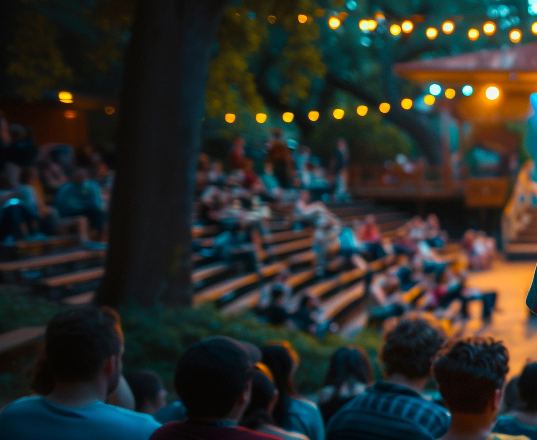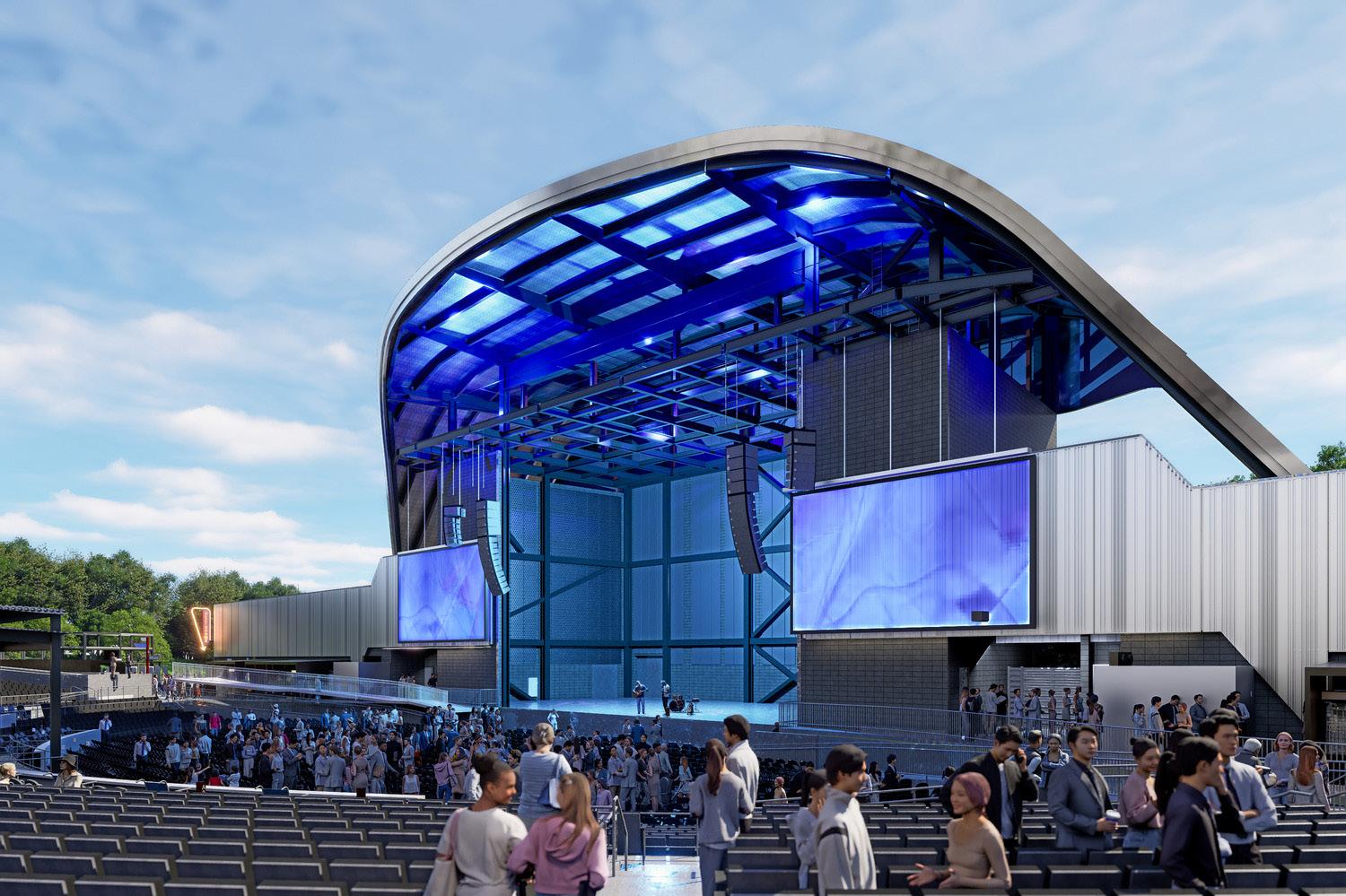 The stage is large, with an industrial, minimalist look that features a new curvilinear roof form. The backdrop is often filled with large digital screens that enhance the performance experience with visuals and lighting effects. Despite being outdoors, the venue is designed with acoustics in mind. The orientation of the stage and the seating help ensure that the sound is directed toward the audience and away from city residents, minimizing noise bleed into the surrounding urban environment.