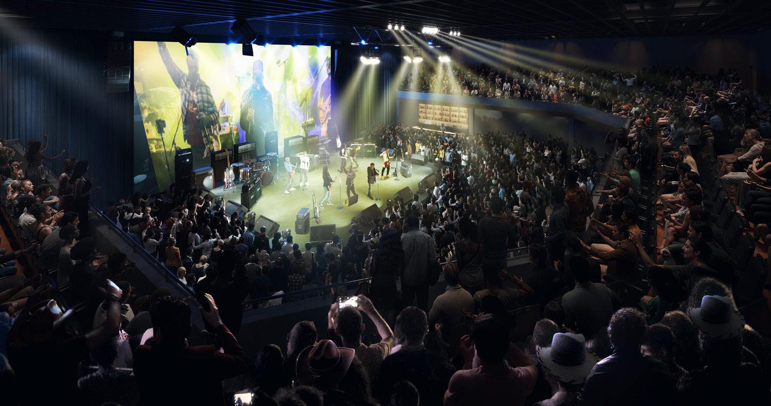 Performers enjoy a 55’ deep by 70’ wide performance stage with 20’ wide wings. A 12’-15’ deep loading dock is being designed to accommodate eight truck bays covered with a canopy to better serve the performers and crews. There are separate men’s and women’s dressing rooms, star dressing rooms, a green room, catering area and a crew locker room.