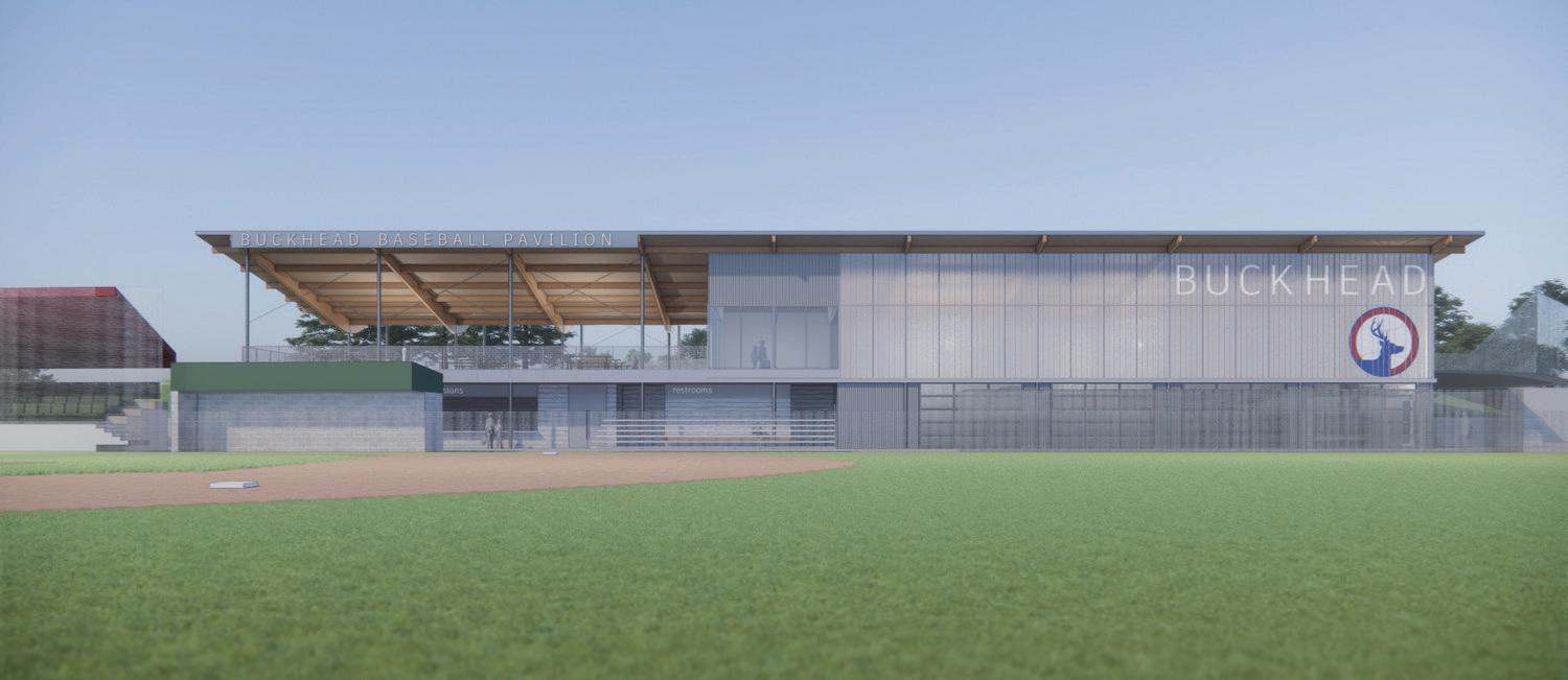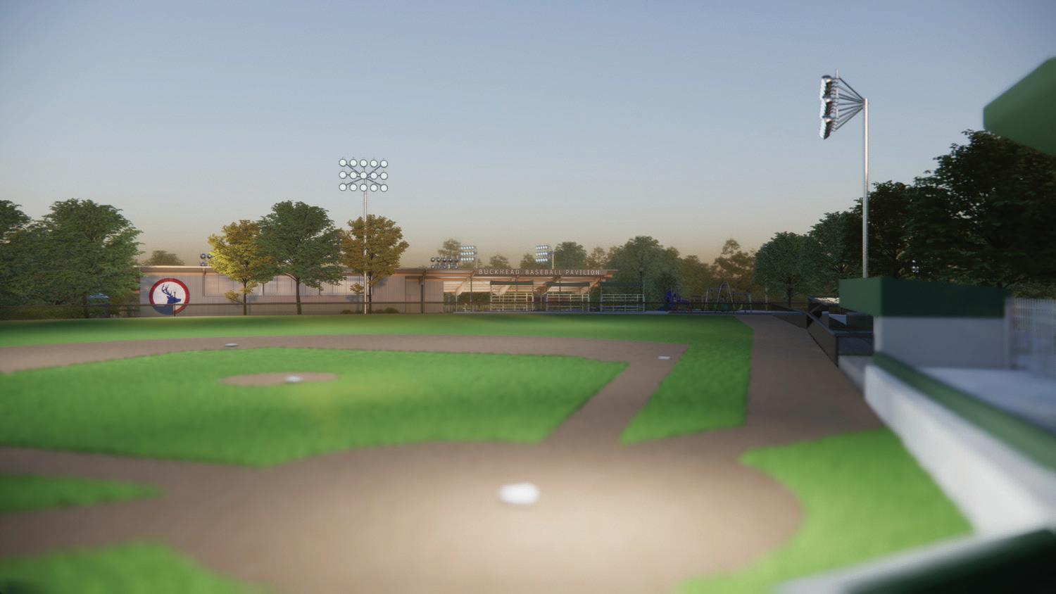 Included in the facility are an artificial turf field, covered ADA accessible bleacher seating for 360 spectators, dugouts, field lighting, electronic scoreboard and perimeter netting. In addition to the field, a new 5,000 sf training building was constructed, providing indoor batting cages, restrooms, locker rooms, storage and training space clad with a detail and material palette consistent with the established athletic campus building standard.