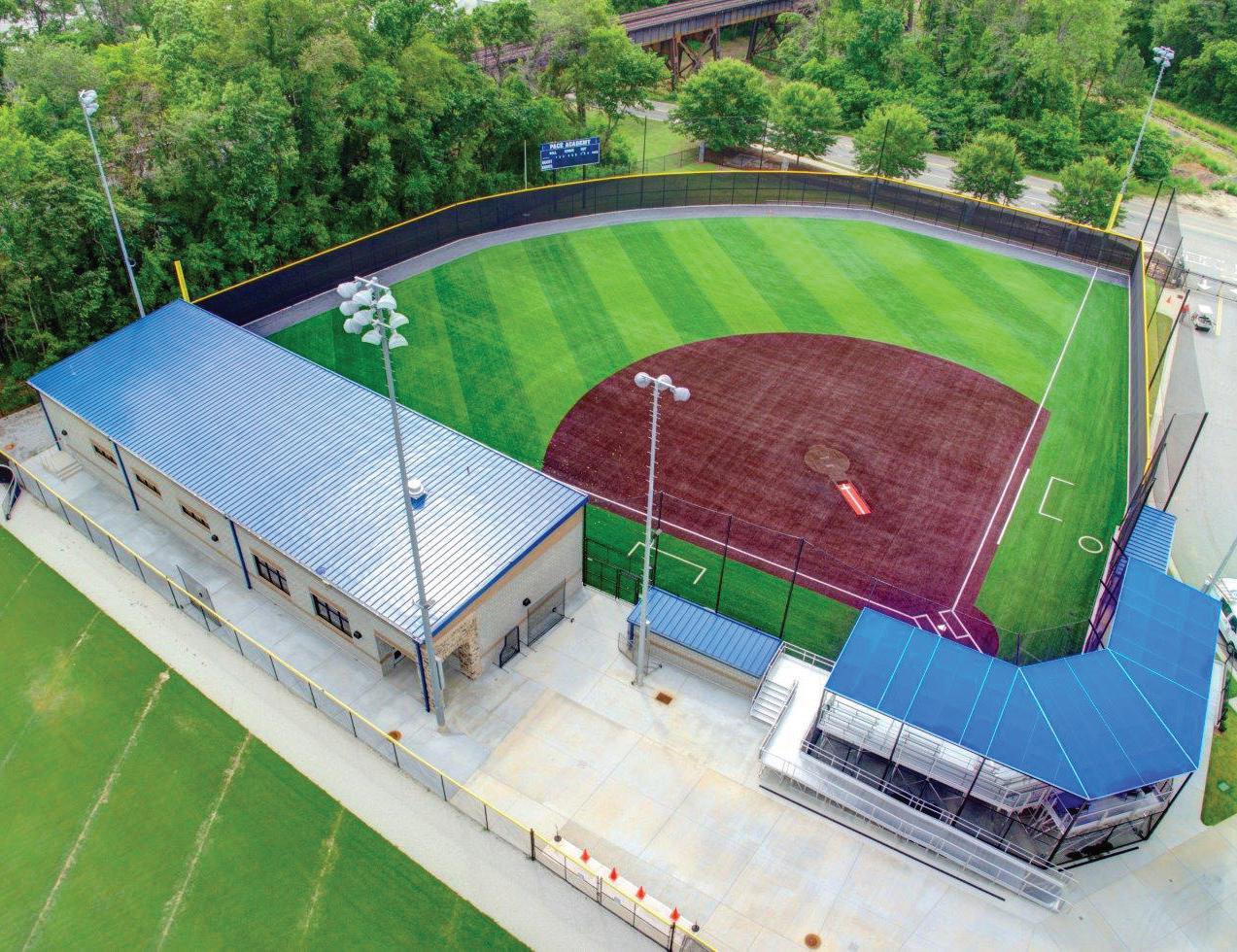 With the completion of the new softball facility, the Pace Academy Riverview Road Sports Complex consolidates all of the Pace Academy Knights’ competition facilities for football, soccer, baseball and softball into a singular athletic campus. To make room for the new facility, an existing pre-engineered building was demolished, and modular block retaining walls were added to provide level grade for a Georgia High School Sports Association (GHSA) compliant competition facility.