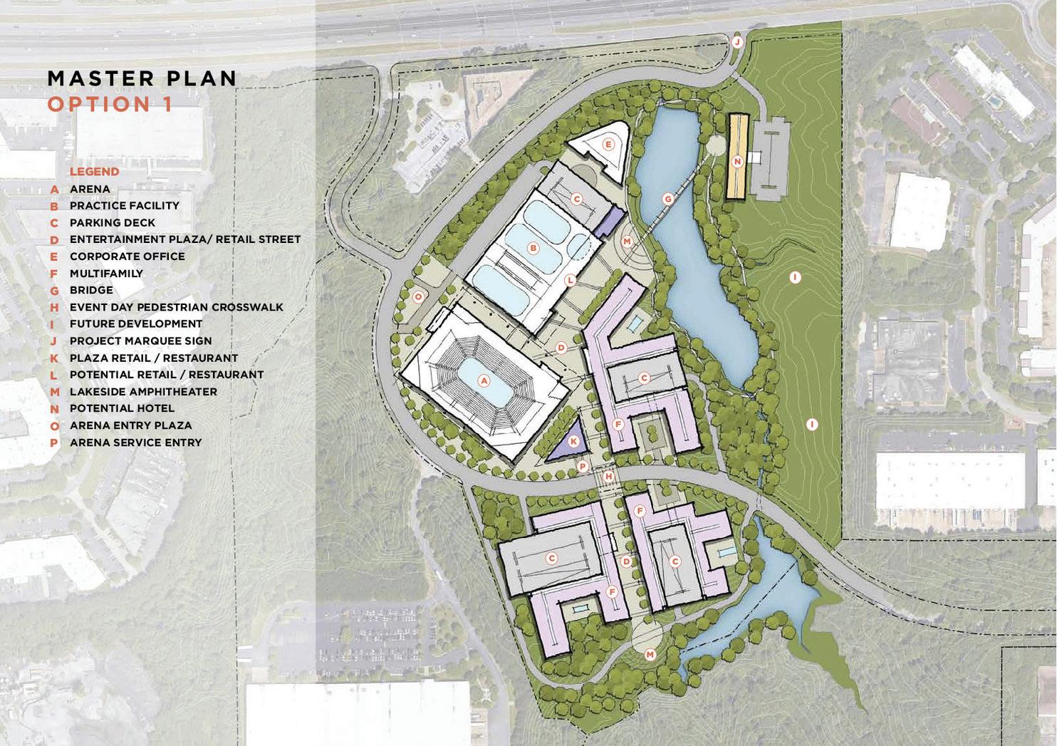Given a challenging 90 acre site with rolling topography and an existing lake, our design team worked to develop a sense of place via several alternatives centered about a new 8,000 seat, 18 suite, 140,000 sf indoor arena and attached two-sheet ice practice facility with a variety of retail, dining and residential elements.