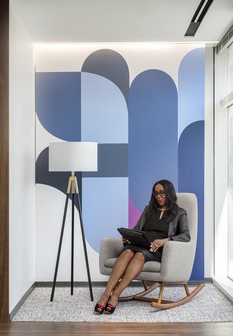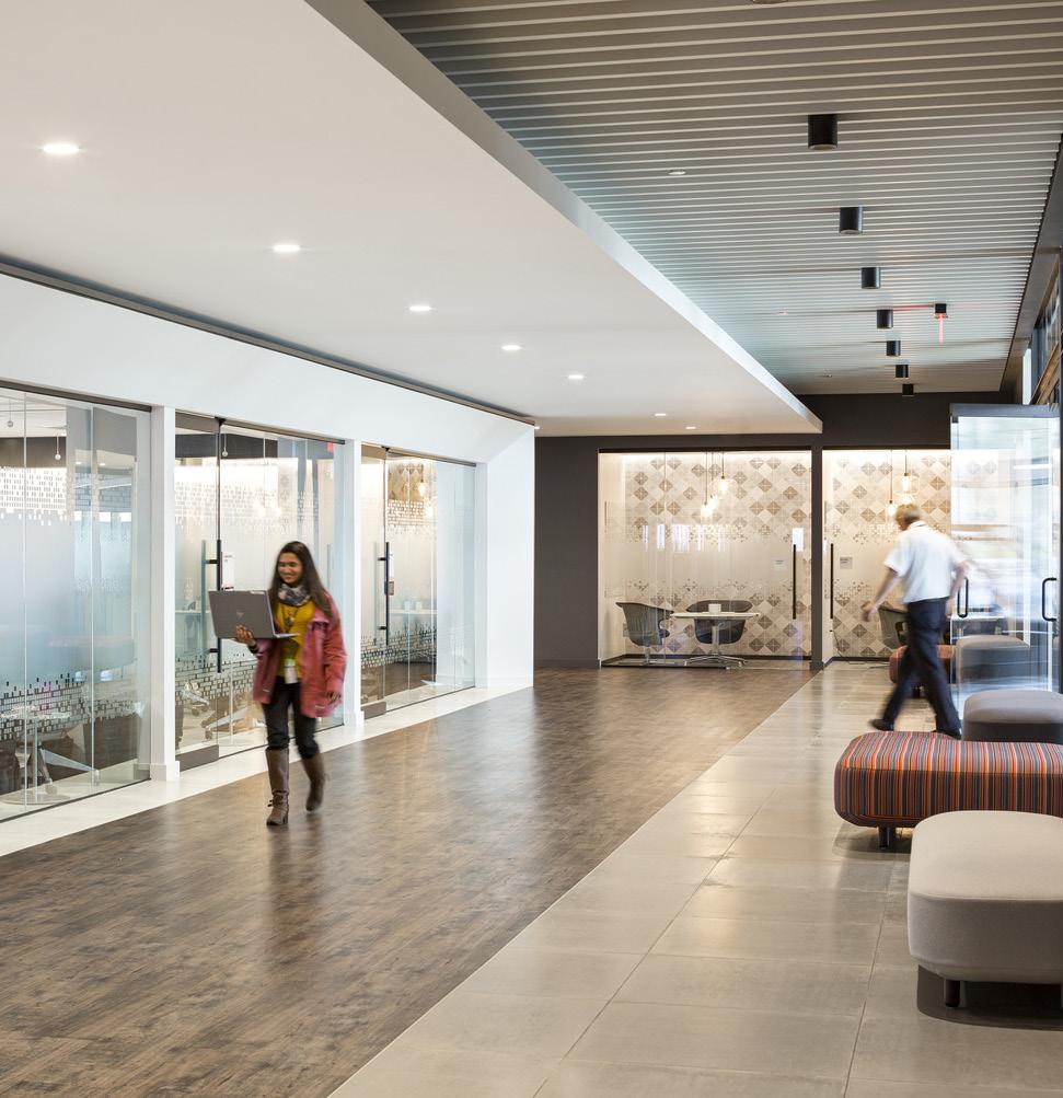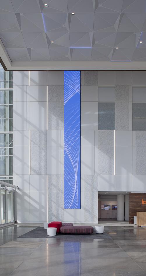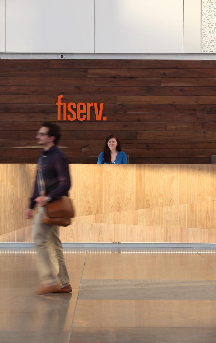 Financial services technology Fiserv has engaged TVS to create custom workplace standards that showcases and supports their dayto-day operations to be implemented at their office locations around the country. The partnership started with Atlanta office space that consisted of combining multiple sites into one campus for an activitybased work environment. After a series of workplace strategy sessions, TVS created a solution that would satisfy Fiserv’s branding, corporate real estate and functional needs. This living expression of the Fiserv brand was then successfully translated into subsequent locations.