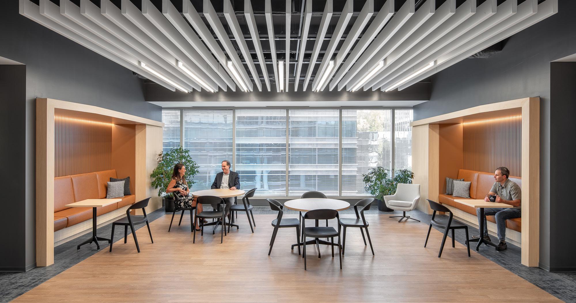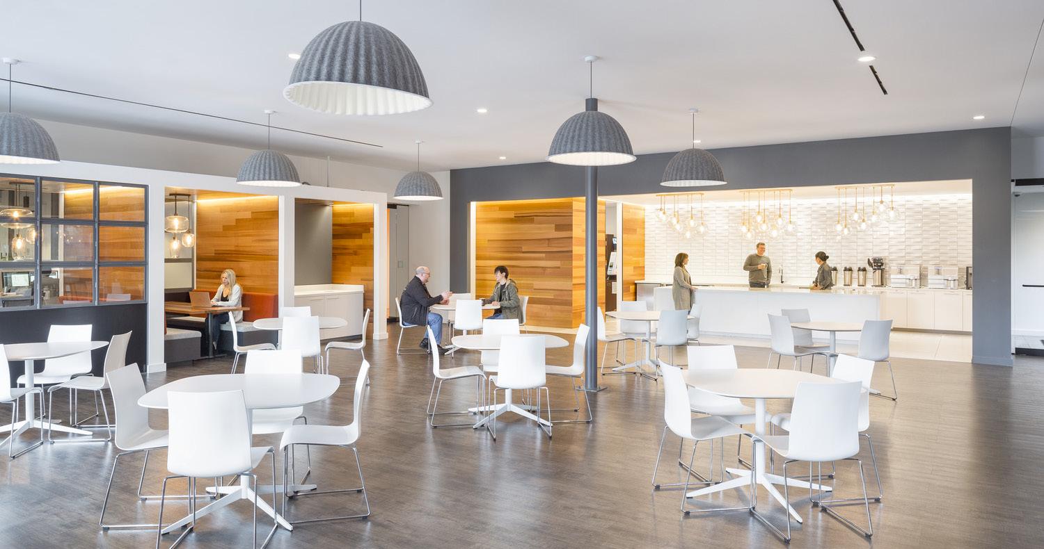 Designed with the employee and client experience in mind, a large work café provides different work environments that support a variety of work styles