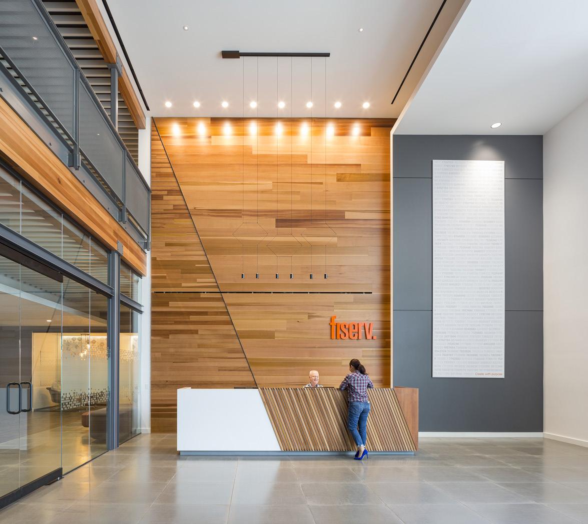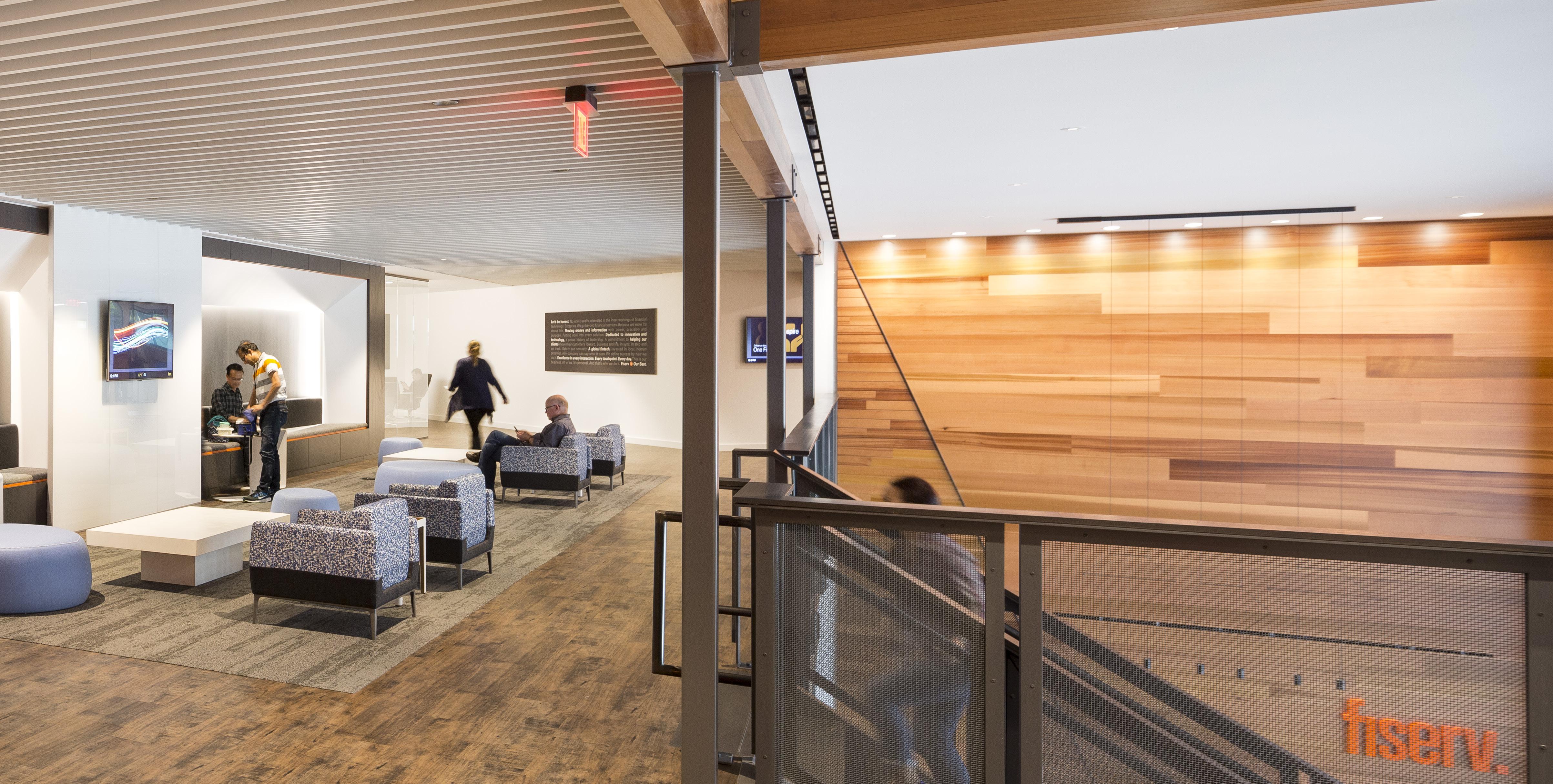 From the wow-inspiring front lobby to the tech-enabled work spaces, clients and staff alike are immersed in the Fiserv brand. Each floor is equipped with high-speed internet and a combination of both individual and community spaces that give employees the choice to work in a variety of settings that suit their needs. Other employee amenities include a café, cafeteria, conference/training center, client briefing center, fitness center and health clinic.