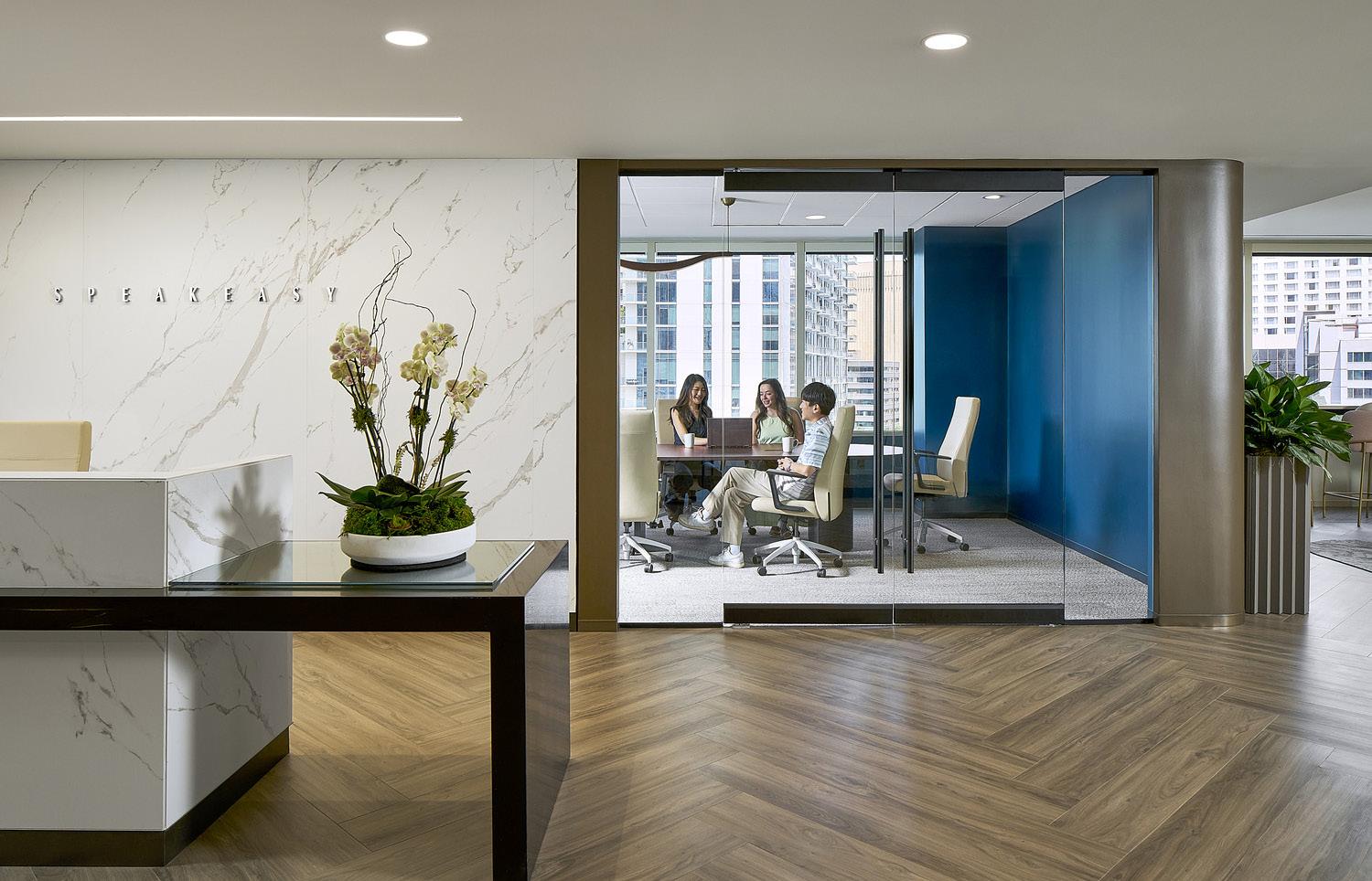 Inspired by the art of kintsugi, which finds beauty in imperfection, this workplace was envisioned as a space that embraces authenticity, growth, and transformation. Speakeasy, a business communication coaching firm, sought a thoughtfully designed office that not only reflects their ethos but also supports their unique operational needs: fostering deep client engagement while cultivating a grounded, inspiring environment for their team.