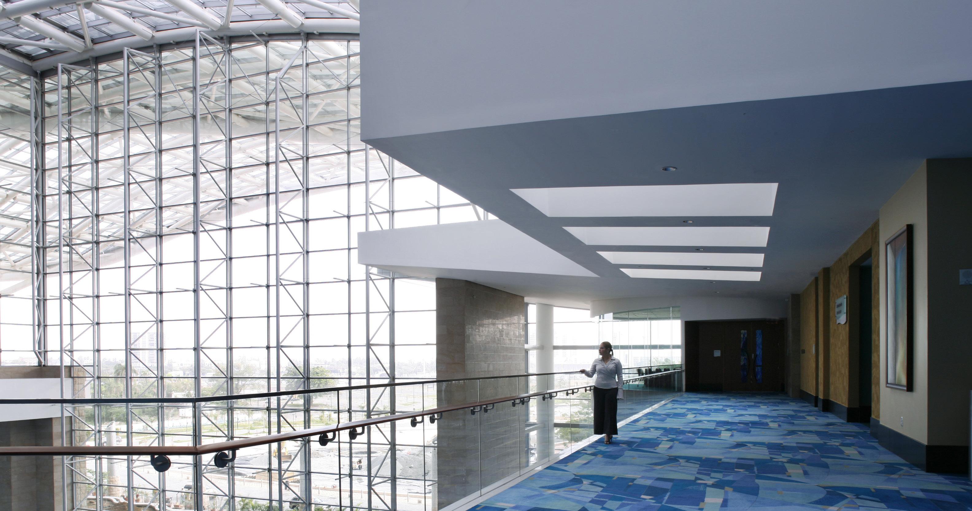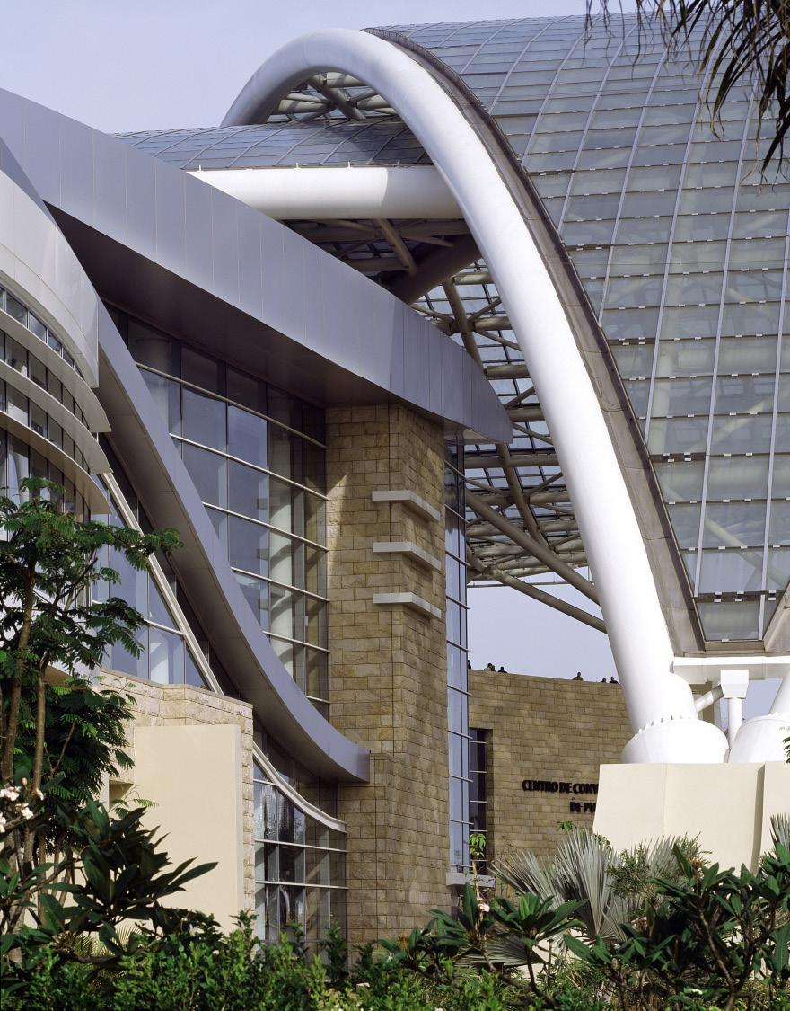 The image of waves embraces visitors and leads them through a tropical urban forest to the glazed lobby, meeting, and exhibition areas. The architectural dialogue continues in themes reminiscent of the Caribbean and Puerto Rico throughout the interiors—with striking views of the courtyard and the open sea.
