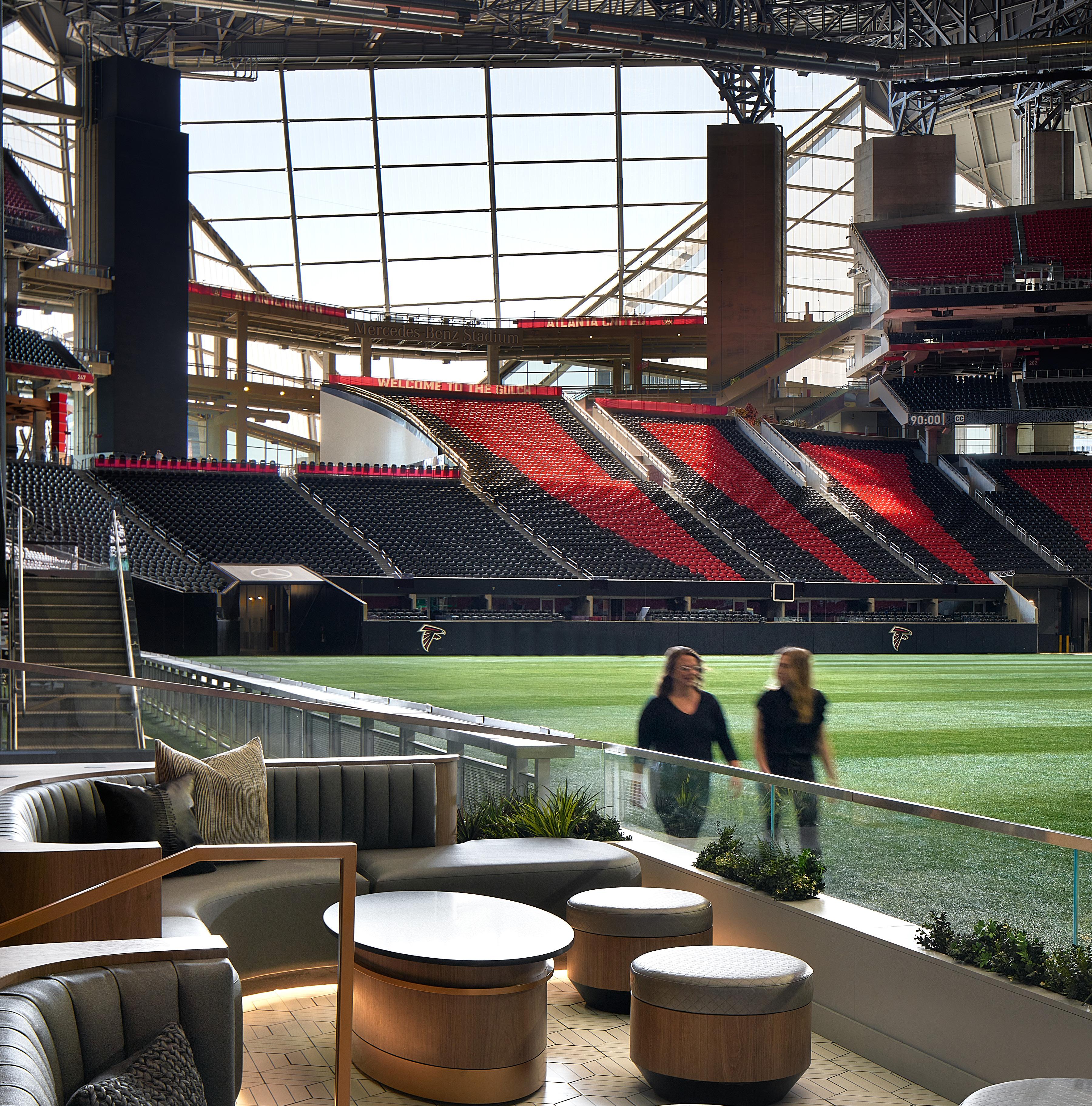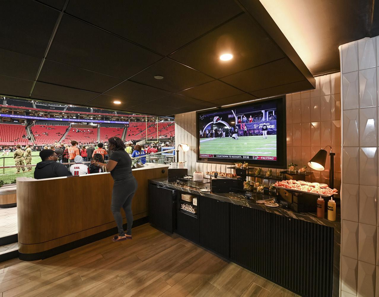 In the exterior corners of the on-field club patios, fans will now be able to rent one of eight private areas accommodating between 6 and 16 people for all Mercedes-Benz Stadium events. These new on-field premium spaces complement the existing premium clubs and suite space in Mercedes-Benz Stadium. Located in the closest proximity to the field, this area is equipped with lounge seating, an included upscale menu and a personal attendant.