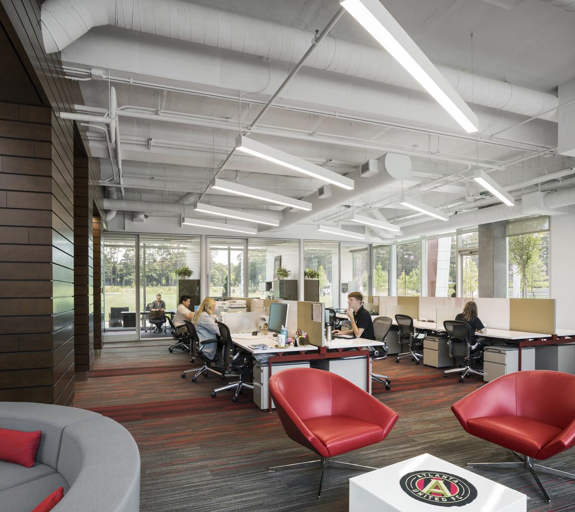 The newly established Atlanta United Football Club needed a home base for its players and employees, fans and community members. The team vision of inclusion and excellence guided the design of the facility which serves as not just the training grounds for the team, but also a home for the youth team, corporate workforce, and community events.