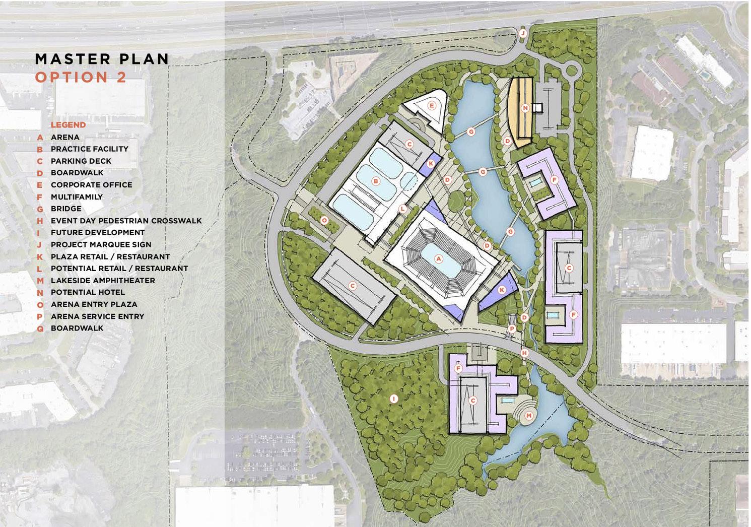 Given a challenging 90 acre site with rolling topography and an existing lake, our design team worked to develop a sense of place via several alternatives centered about a new 8,000 seat, 18 suite, 140,000 sf indoor arena and attached two-sheet ice practice facility with a variety of retail, dining and residential elements.