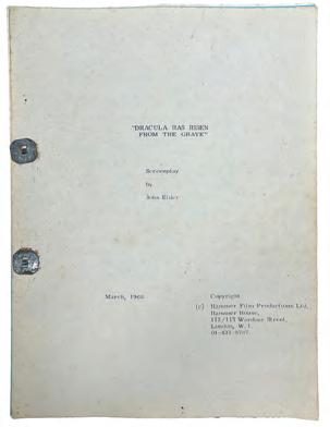 scripts, hence the removeable butterfly clips which allowed for pages to be added or replaced. Rarely seen on the open market, this copy is complete and in great condition. So you can read it as a novel, or do ‘Sing-a-long-a-sound of Dracula’ karaoke style while watching the film. Now that’s show business!