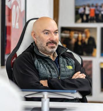 The pair run Active Digital, one of the UK’s most well-respected connectivity and communication solutions-based businesses. Their HQ in Five Oak Green is unlike any other I have been to as instead of banks of desks and anodyne artwork, their converted barn is festooned with sporting memorabilia with signed framed shirts from the likes of England Rugby’s Owen Farrell and photos of Olympian Steve Backley all thanking Richard, Jo and their team for their support over the years. And then there’s the custom-made Scalextric which Richard commissioned and features tiny models of some of his favourite fast cars, a passion for the entrepreneur.