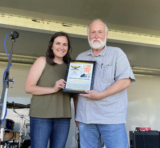 Following the parade, winners arrived on stage near the Commerce building. Each award recipient received a plaque stating the award received and achivements earned. The plaques will be displayed near the entrance doors of the MPHS Tim Grady gymnasium for one year. After one year, the plaques will be mailed to recipients to keep permanently. Chris Hotchkiss announced each award winner, making sure all recipients were given the recognition they deserved. Family and friends of the recipients, as well as community members, were in attendance. It was a great day recognizing some outstanding Mid-Prairie alumni!