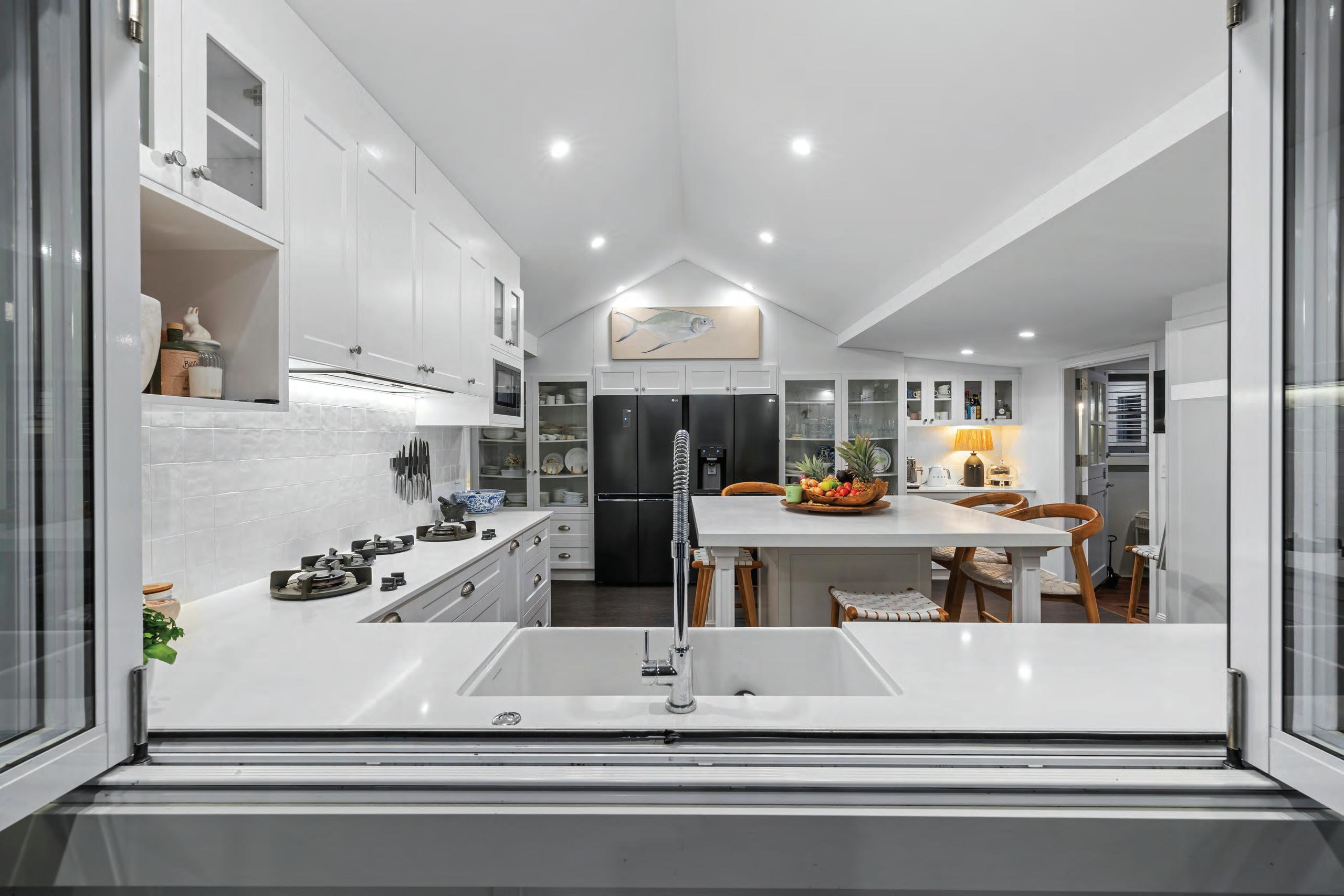 and office nook set the tone for a property that balances lifestyle with thoughtful design. At the heart of the home is the chef's kitchen, a masterpiece of form and function. Think double German-made Neff ovens, a pit burner gas cooktop engineered in the Netherlands, and an expansive eight-seater dining island under raked ceilings.