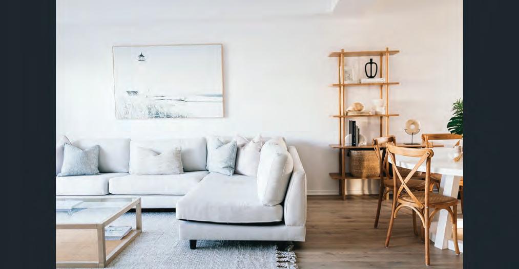 • Social hostess kitchen w/ soft closing cabinetry, stone benches, integrated dishwasher, induction cook top & storage solutions.