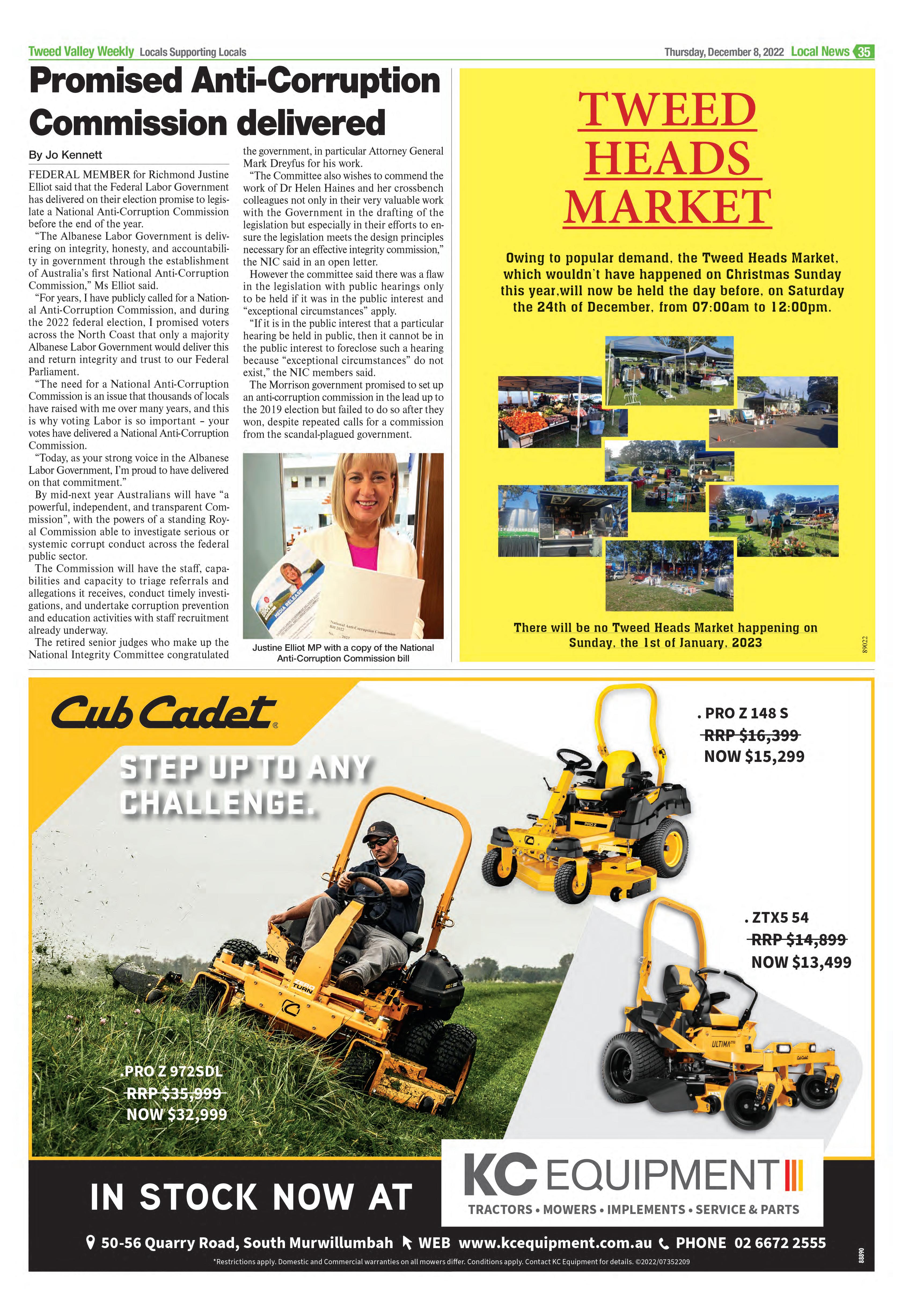 Mike Yarrow, ByangumPlease note the views on the letters page are that of the letter writer and not of the Tweed Valley Weekly. Letters must include a suburb and contact number for verification. Letters may be edited for length or legal reasons. Send your letters to editor@theweekly. net.au.