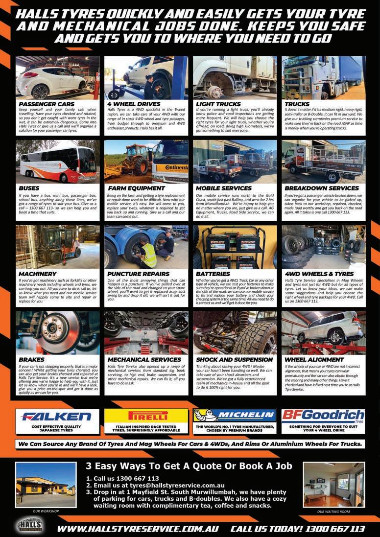 Real Estate Authorised J Elliot, ALP 107 Minjungbal Drive Tweed Heads South 87989 FROM COAST TO COUNTRY Your dedicated weekly real estate guide See pages 46 to 56 1 Mayfield Street, Murwillumbah 1300 667 113 • Car • Truck • 4x4 • SUV • Tractors • Forklift Mobile service available Northern Rivers biggest Tyre shop Most Tyres in stock The Locals Choice Parking for Trucks & B Doubles DON’T RISK YOUR SAFETY WITH WORN OUT TYRES 88038 YOUR GARAGE DOOR SPECIALISTS SUPPLY AND INSTALLGARAGE DOORS - RESIDENTIAL, COMMERCIAL AND INDUSTRIAL GARAGE OPENERS & ACCESSORIES CONTACT US TODAY - 0402 234 743 WWW.MAKOINSTALLATIONS.COM SERVICING THE TWEED TWEEDMURWILLUMBAH,COAST, HEADS AND COOLANGATTA SINCE 2003 MAKO INSTALLATIONS CATERS FOR ALL MAKES AND MODELS OF GARAGE DOORS & MOTORS 86259 TWEED SKIN CANCER CLINIC 25 YEARS OF EXCELLENCE Tweed Day Surgery and Specialist Centre Suite 6, 38-44 Boyd St Tweed Heads 07 5536 4961 EARLY DETECTION MAY SAVE LIVES Excellence in Skin Cancer and Melanoma Diagnosis and Treatment 89010 Experience counts Open Saturdays No referral necessary 88199 Post Office Building, Suite 1/118 Murwillumbah Street, Murwillumbah, NSW, 2484 Phone: 02 6672 1698 GIO Murwillumbah is an Authorised Representative of AAI Limited ABN 48 005 297 807 trading as GIO. Before buying this insurance issued by GIO read the relevant Product Disclosure Statement. Go to gio.com.au for a copy. TMD also available Why not drop in for a chat? ALTERNATORS STARTERS BATTERIES WIRING SOLAR PANELS CARAVAN WIRING ELECTRIC BRAKES TOW PAC SYSTEMS HEADLAMP UPGRADE DRIVING LAMPS VINTAGE VEHICLES GENERATORS & REGULATORS VEHICLE RESTORATION WIRING AUXILIARY BATTERY SYSTEMS Complete Auto Electrical Services and Reconditioning Service DAVE EVANS, JOAN EVANS, MAITLAND BYRNES, HOLLIE EVANS 88585 Phone 0491 976 358 Email tvaelectrics@gmail.com Tradition of care McGuiness Funerals Please refer to our website for funeral notices www.mcguinessfunerals.com.au Murwillumbah (02) 6672 2144 Billinudgel (02) 6680 3084 82000 Poppies for mental health Tweed Link PAGES 8-10 see page 12