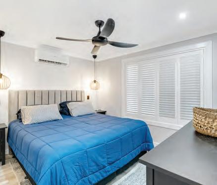 conditioning, ceiling fan and beautiful bedside pendant lights. Second bedroom has built-ins and ceiling fan can fit a queen size bed.